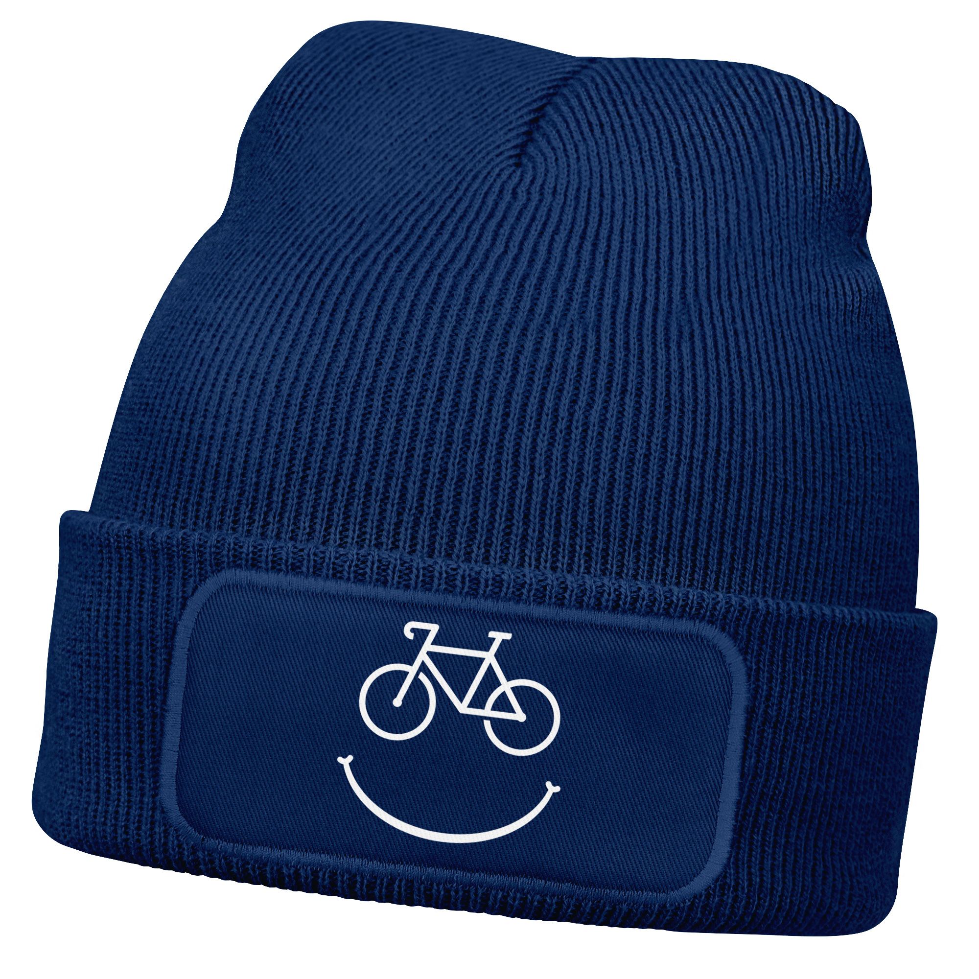 - Trendige Strickmütze für Herren mit witzigem Fahrrad Smile Motiv - bequem warm und perfekt als Geschenk für Fahrrad Liebhaber, Radfahrer und Bike Fans