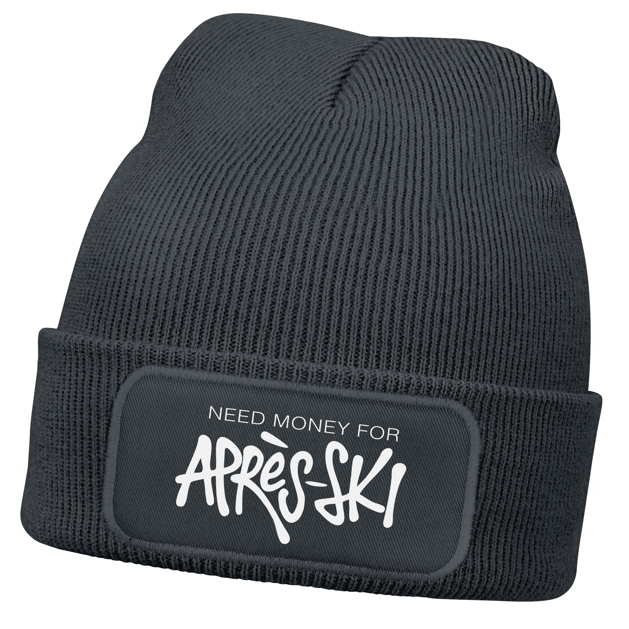 Herren Beanie mit Spruch Need Money for Après-Ski Strickmütze Aufdruck Lustig Mütze Männer Wintermütze Skifahren Moonworks®