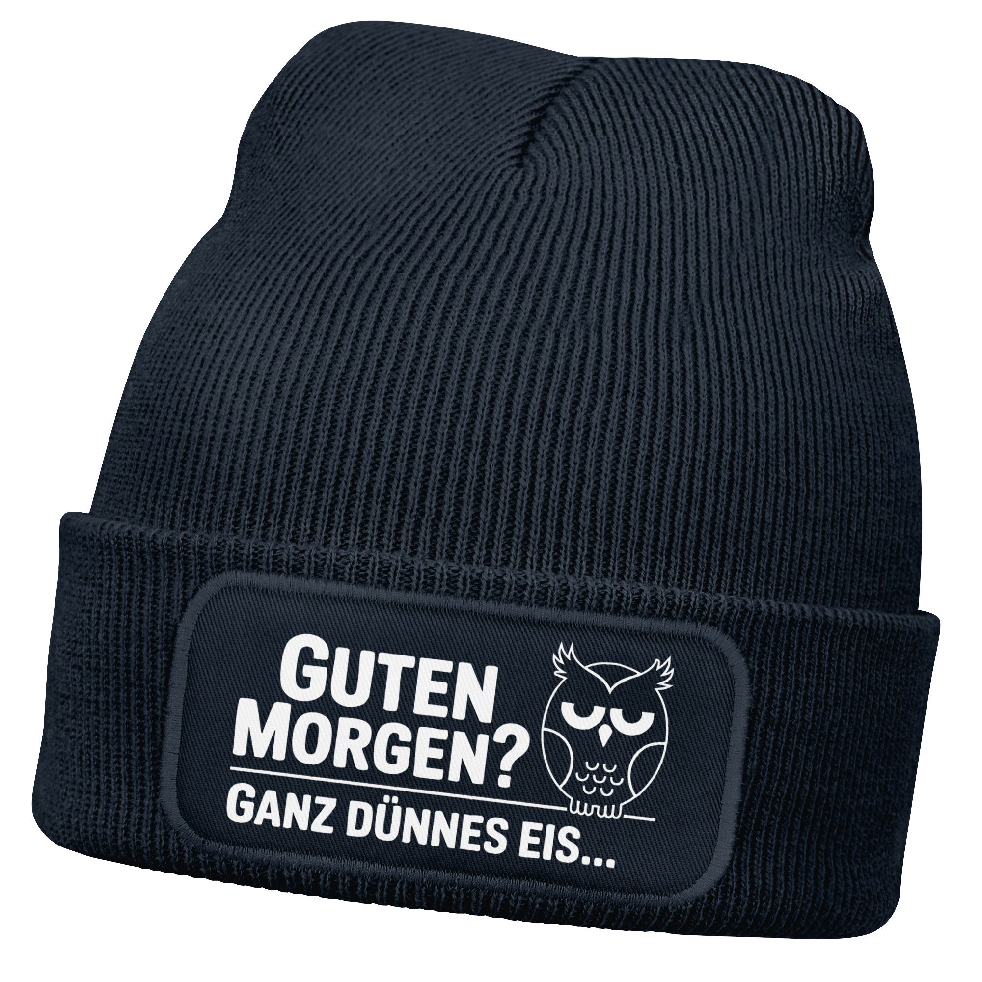 - Diese trendige Herren-Mütze mit Spruch „Guten Morgen -ganz dünnes Eis“ kombiniert Komfort mit einer guten Portion Wortwitz – perfekt für Morgenmuffel die es nur mit Mütze draußen aushalten. Eine lustigeGeschenkidee für Freunde, Kollegen oder Schlafmützen