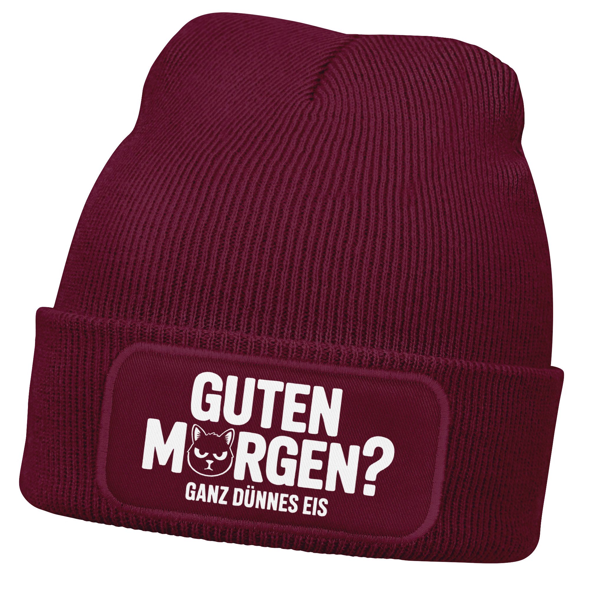 - Diese trendige Herren-Mütze mit Spruch „Guten Morgen -ganz dünnes Eis“ kombiniert Komfort mit einer guten Portion Wortwitz – perfekt für Morgenmuffel die es nur mit Mütze draußen aushalten. Eine lustigeGeschenkidee für Freunde, Kollegen oder Schlafmützen