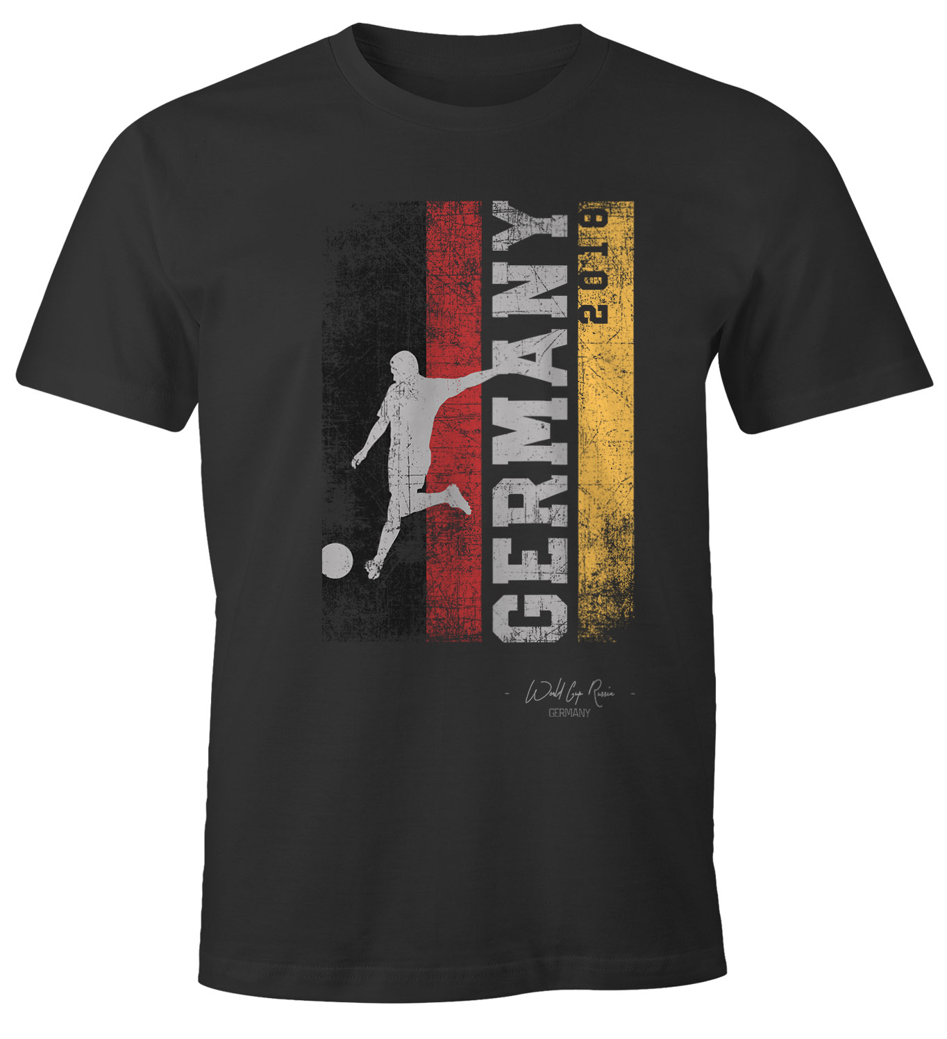 • cooler Print mit Deutschland Fahne, Germany Schriftzug und engeriegeladenem Fußballspieler, der zum Schuss ausholt - das Ganze natürlich im coolen und zeitlosen Vintage Stil