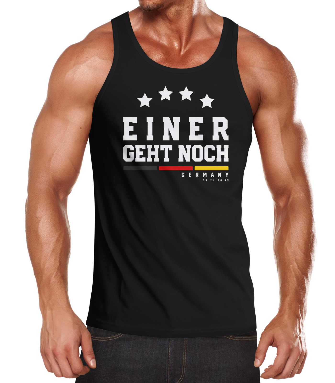Herren Fan-Shirt Tank-Top Achselshirt Muskelshirt Deutschland Einer geht geht noch vier Sterne Fußball WM 2026 Moonworks®
