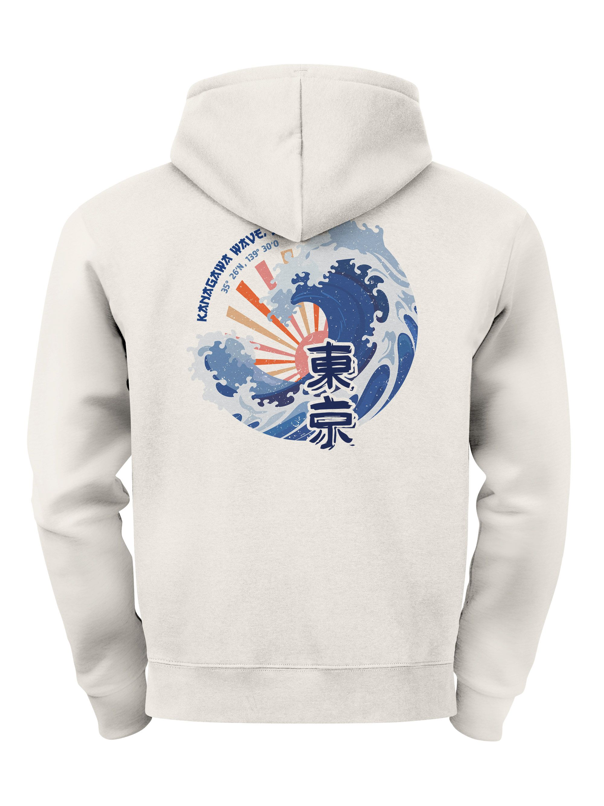 Herren Hoodie Backprint Japan Wave | Kapuzenpullover mit Tokyo Schriftzeichen und Kanagawa Motiv Urban Style Streetwear Männer Neverless®