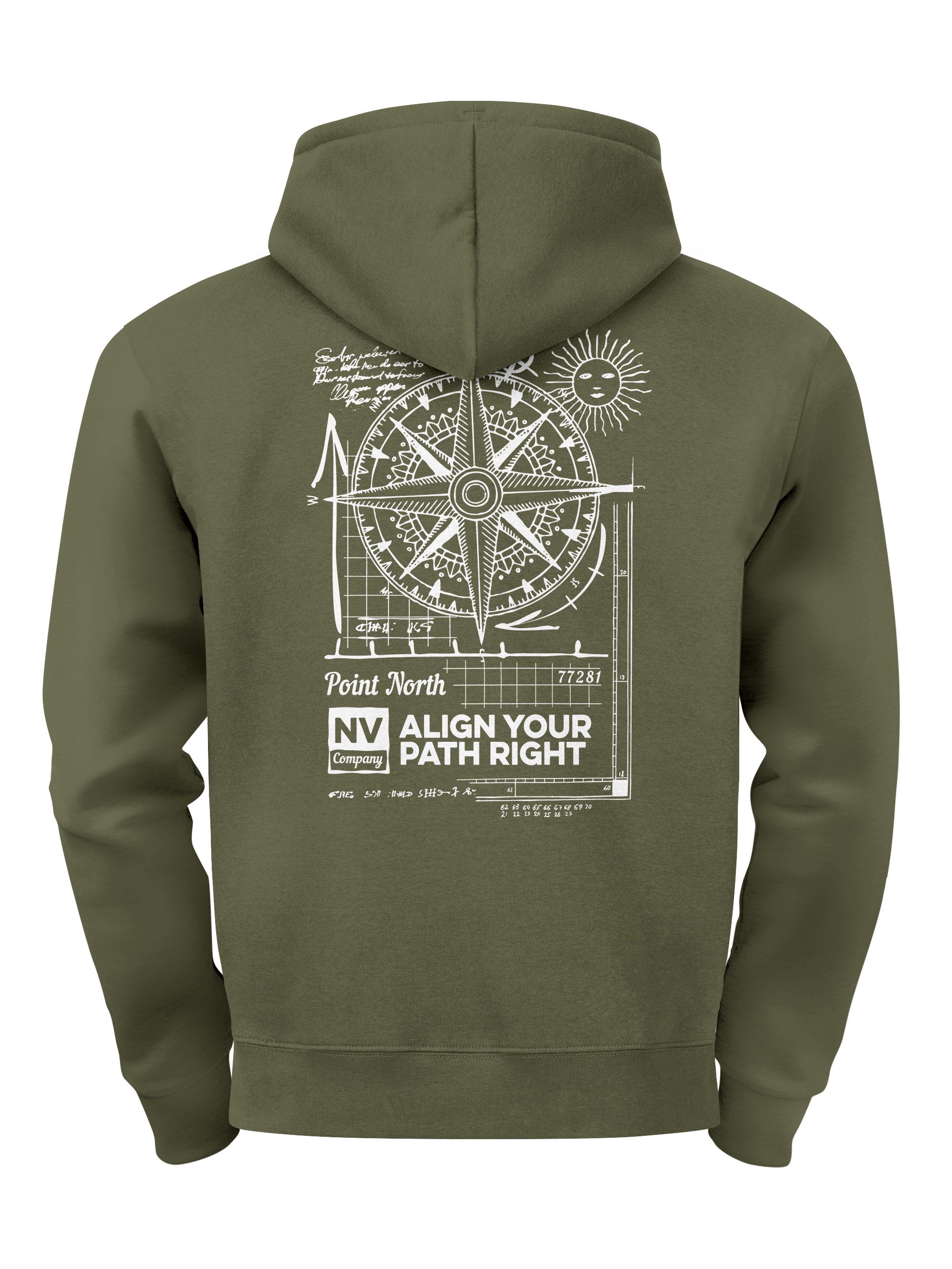 Herren Hoodie Kompass Motiv Backprint | Neverless Point North Kapuzenpullover mit Schriftzug Align Your Path Right Neverless®