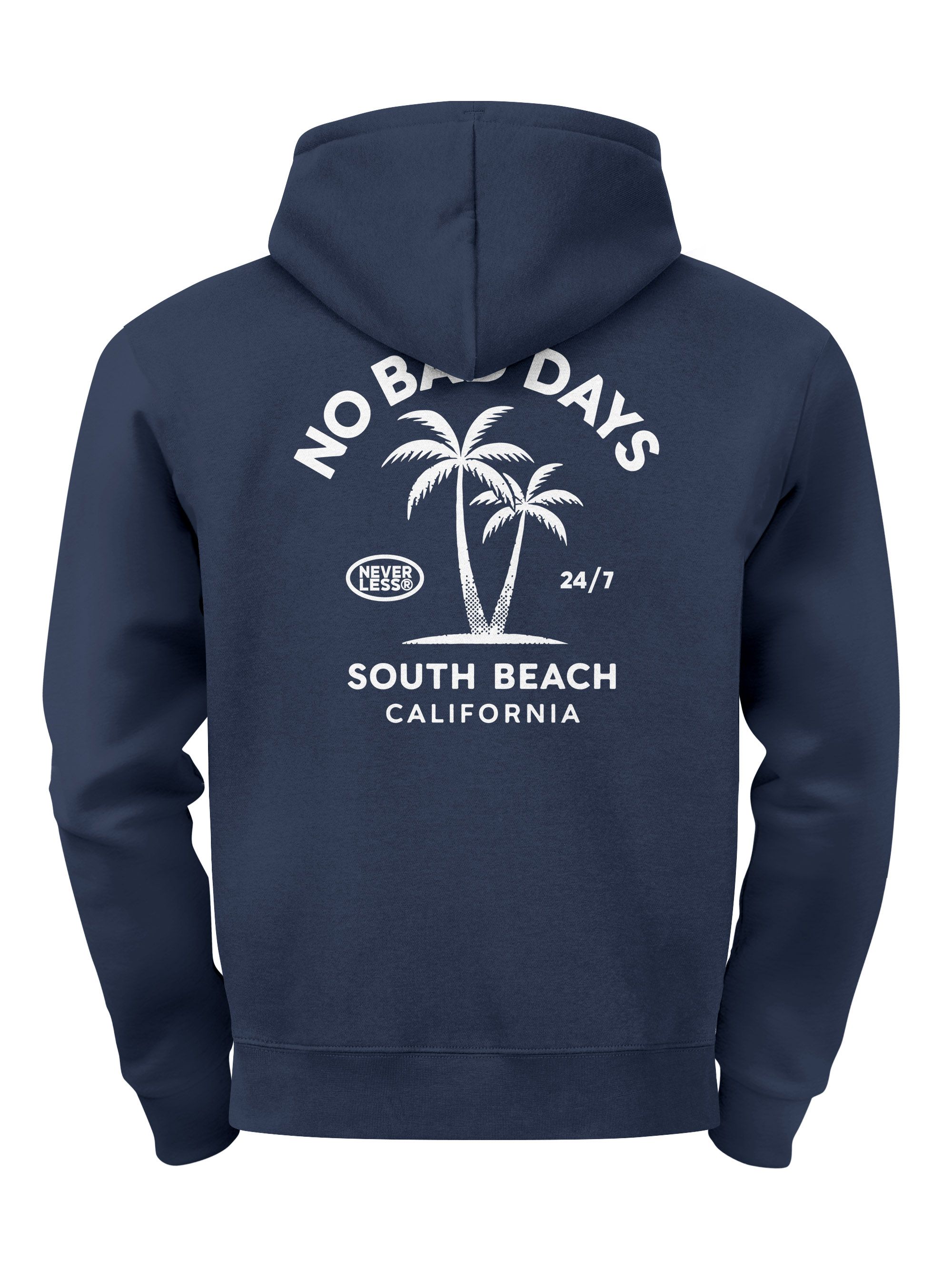 Herren Hoodie No Bad Days Kapuzensweatshirt mit Palmenmotiv South Beach California Design Männer Fashion Streetstyle Neverless®