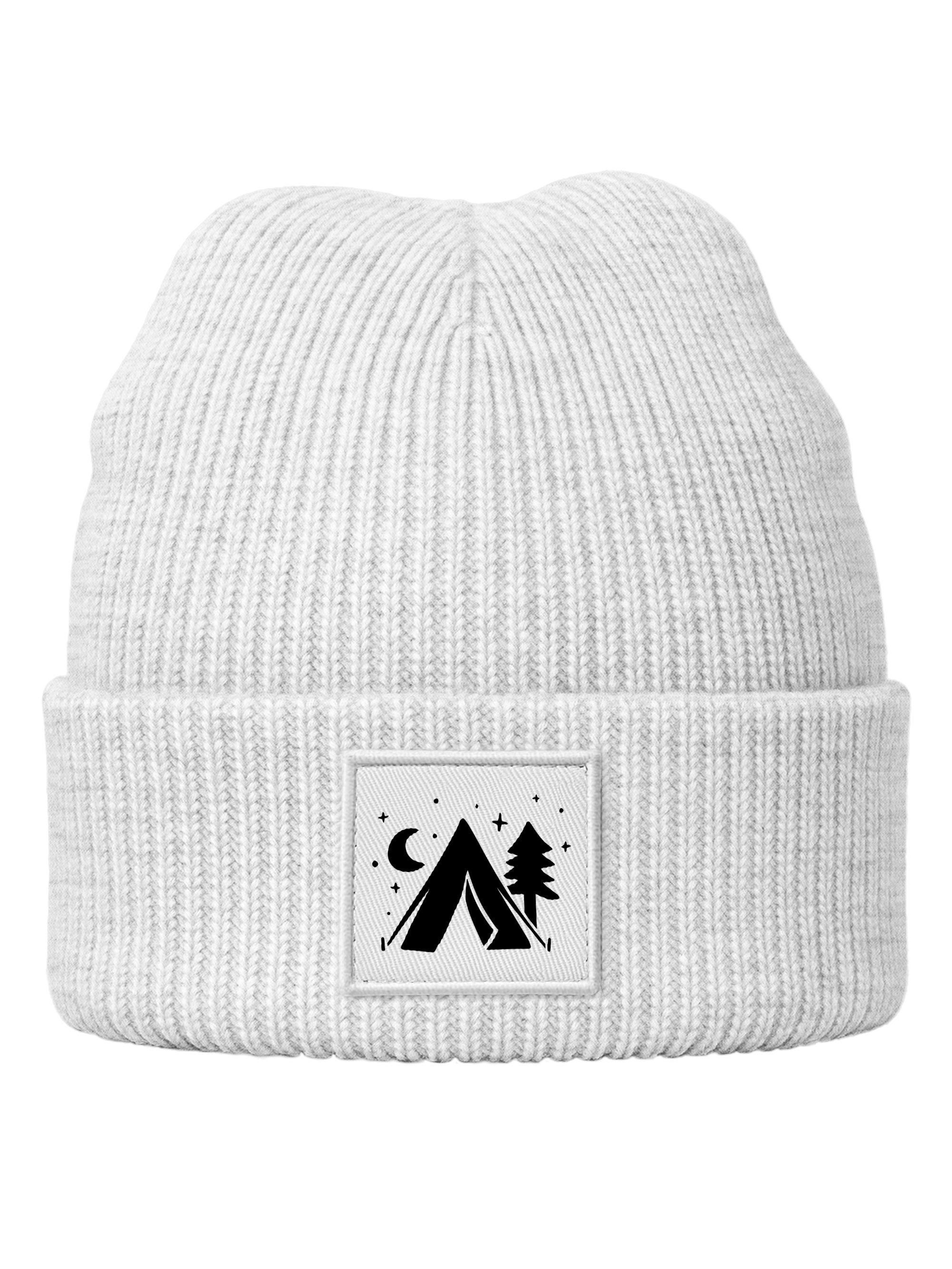 - Stylische Herren-Strickmütze mit bedrucktem Patch: Dieser Beanie überzeugt durch sein minimalistisches Camping Motiv. Eine lässige Strickmütze mit quadratischem Patch für Männer, die Natur und Abenteuer lieben