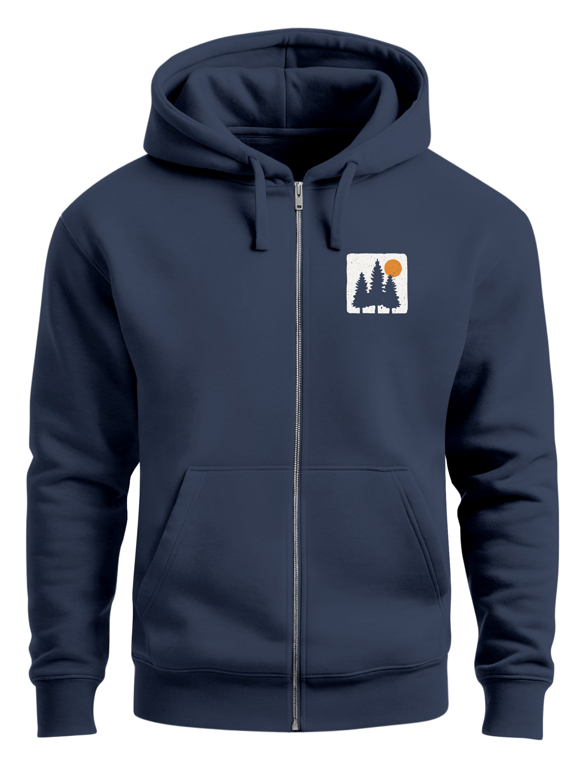 - Kapuzen Sweatjacke für Männer mit Bergsymbol und Sonne im Logo-Stil. Modernes Outdoor Design für Abenteurer und Naturfreunde – ideal für Freizeit, Camping, Wandern und Casual Looks