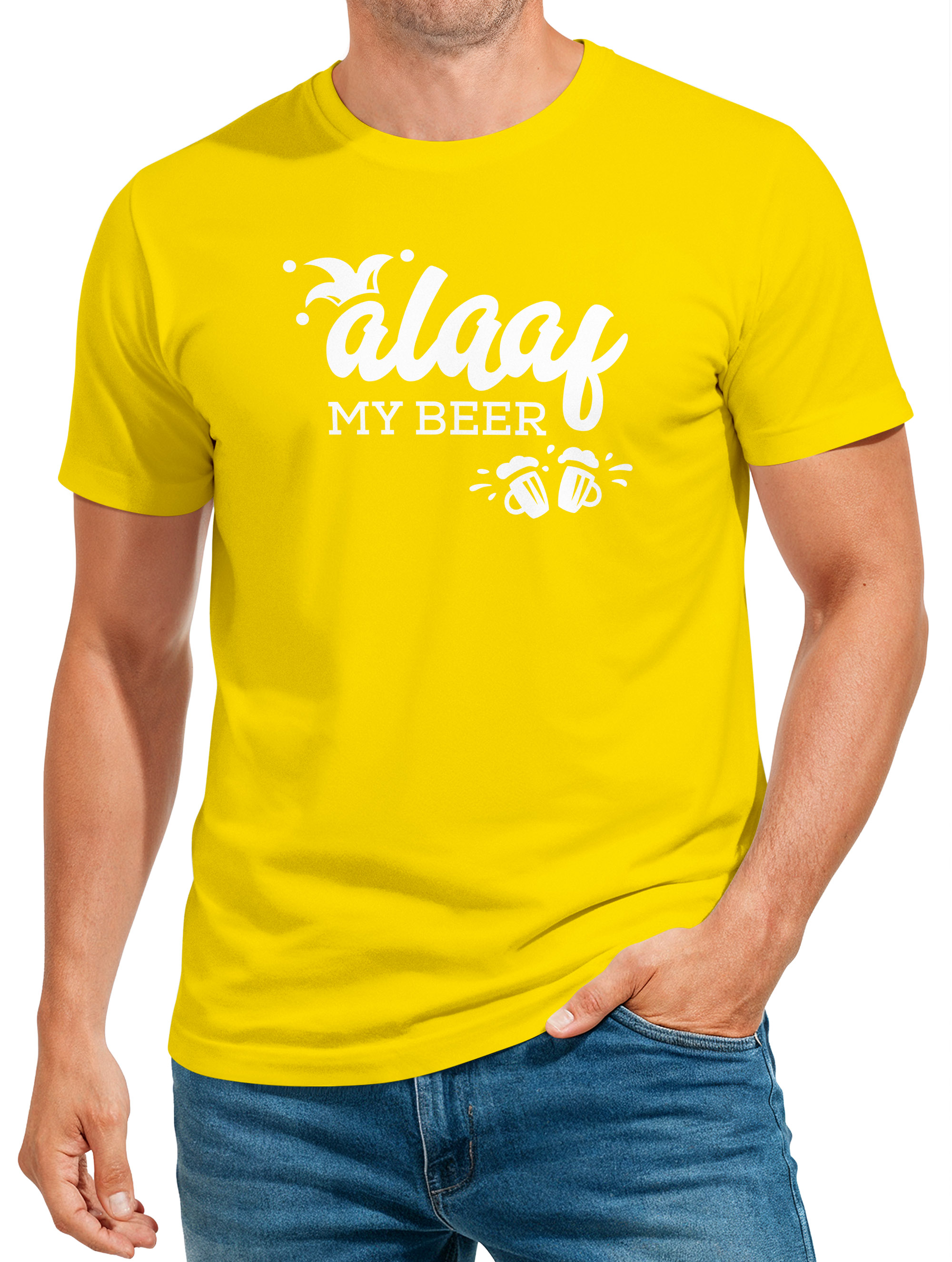 - Das Faschingskostüm, für alle Männer, die kein Faschingskostüm brauchen: Lustiges Herren Faschings T-Shirt mit "Alaaf My beer" Print der Marke MoonWorks® - für alle Fans von Wortspielen und frei nach dem Motto "Ich brauche ein Kostüm aber hab keine Lust"