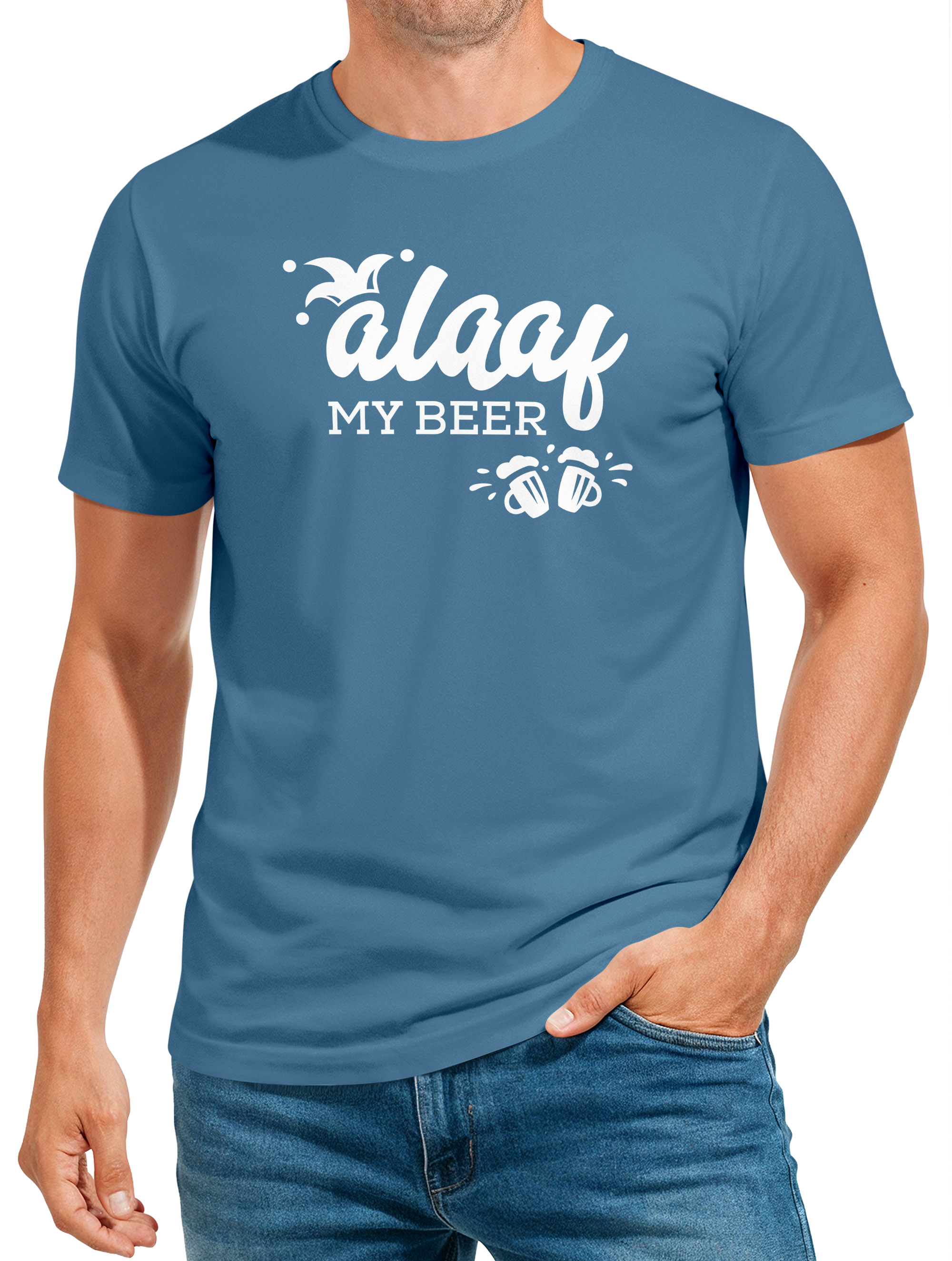 - Das Faschingskostüm, für alle Männer, die kein Faschingskostüm brauchen: Lustiges Herren Faschings T-Shirt mit "Alaaf My beer" Print der Marke MoonWorks® - für alle Fans von Wortspielen und frei nach dem Motto "Ich brauche ein Kostüm aber hab keine Lust"