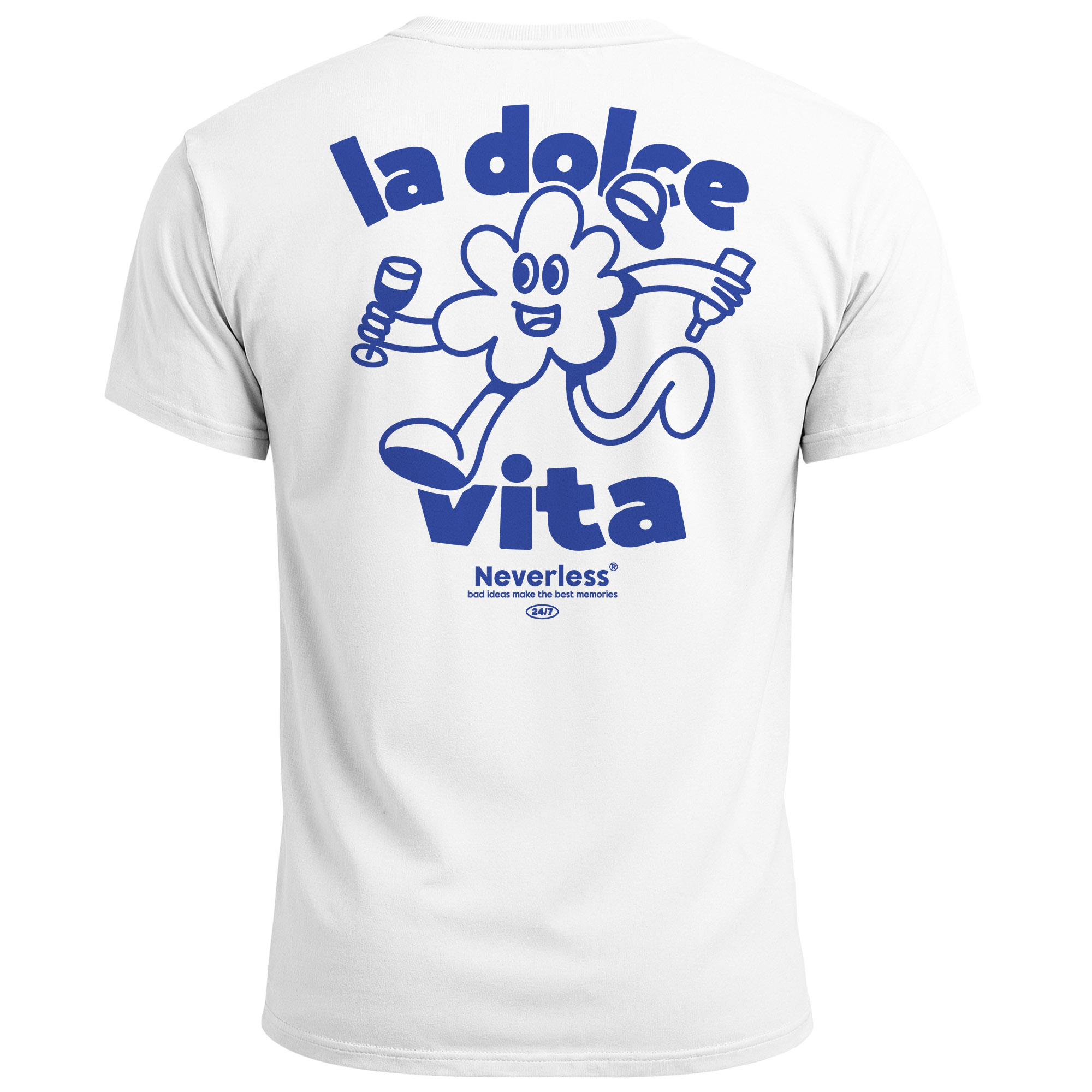 - La Dolce Vita Feeling - Stylisches T-Shirt mit retro-inspiriertem Print. Willst du das Leben feiern mit Abenteuer, Vibes und Dolce Vita? Dann passt das Shirt mit Retro Charme Motivprint perfekt in deine Sommer Garderobe.