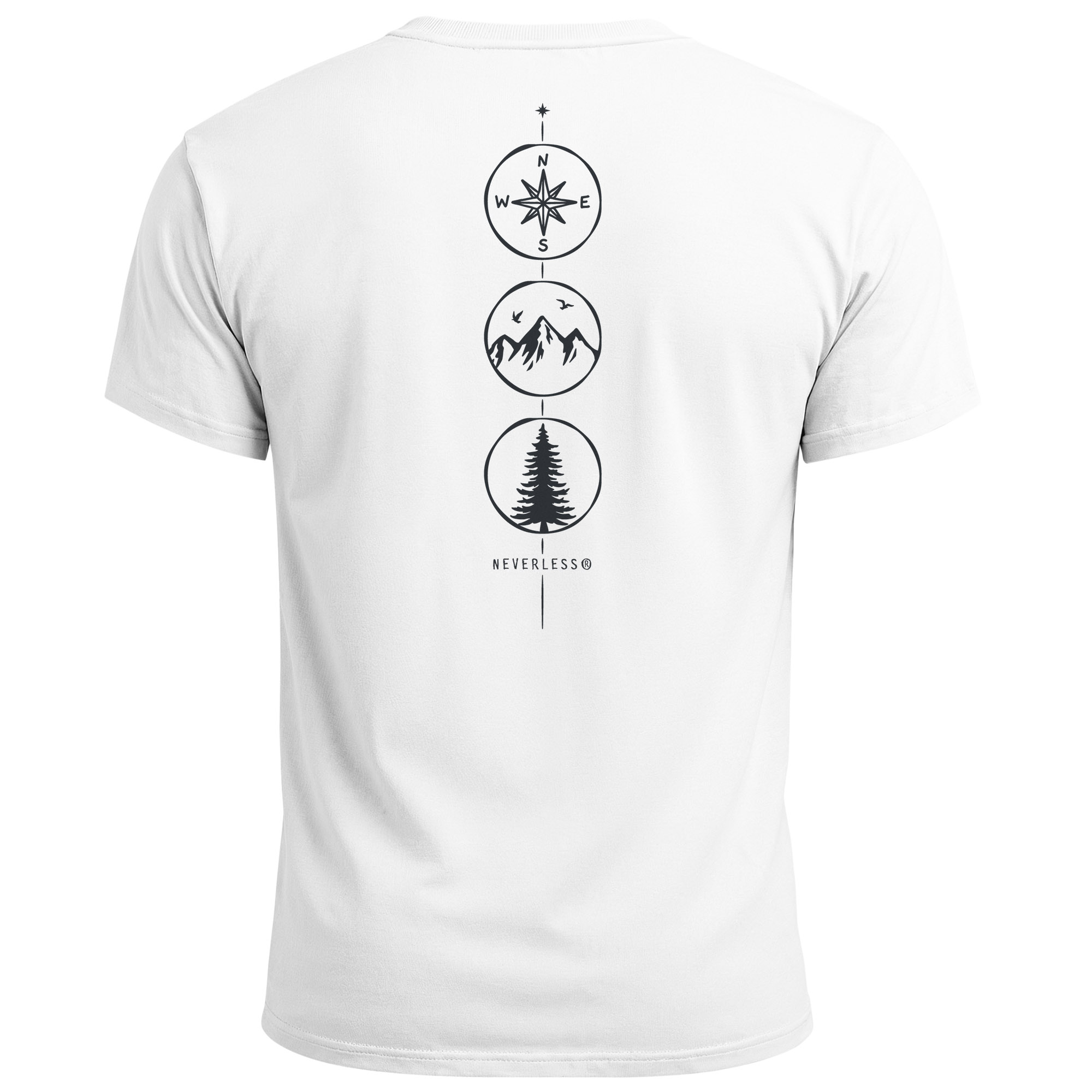 - Eyecatcher auf deinem Rücken: Kompass, Gipfel und Baum – ein grafischer Wegweiser für Naturfreunde. Dieses Shirt bringt klare Symbole für Orientierung, Freiheit und Outdoor-Spirit auf den Punkt – reduziert, stark, stylisch