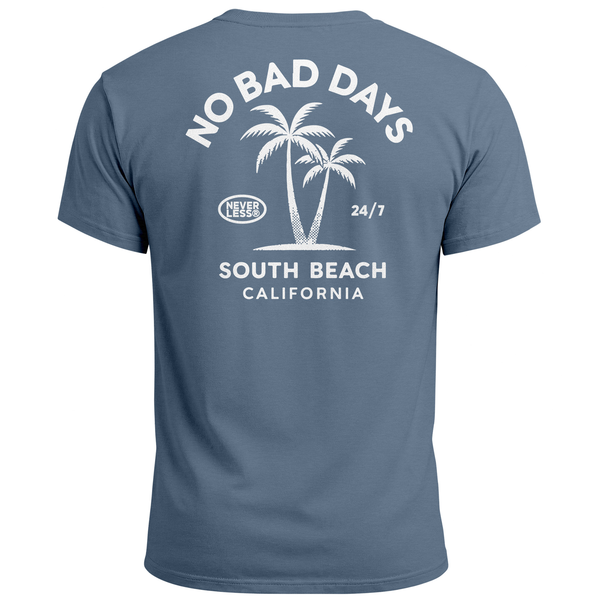 - „No Bad Days“ – dieses Shirt steht für gute Laune, Sonne und den entspannten Lifestyle Kaliforniens. Der Minimal-Print mit Palmen und Statement-Slogan ist ein echter Hingucker für warme Tage. Ideal für Männer, die Sonne, Stil und lockere Outfits mit kalifornischem Flair kombinieren wollen