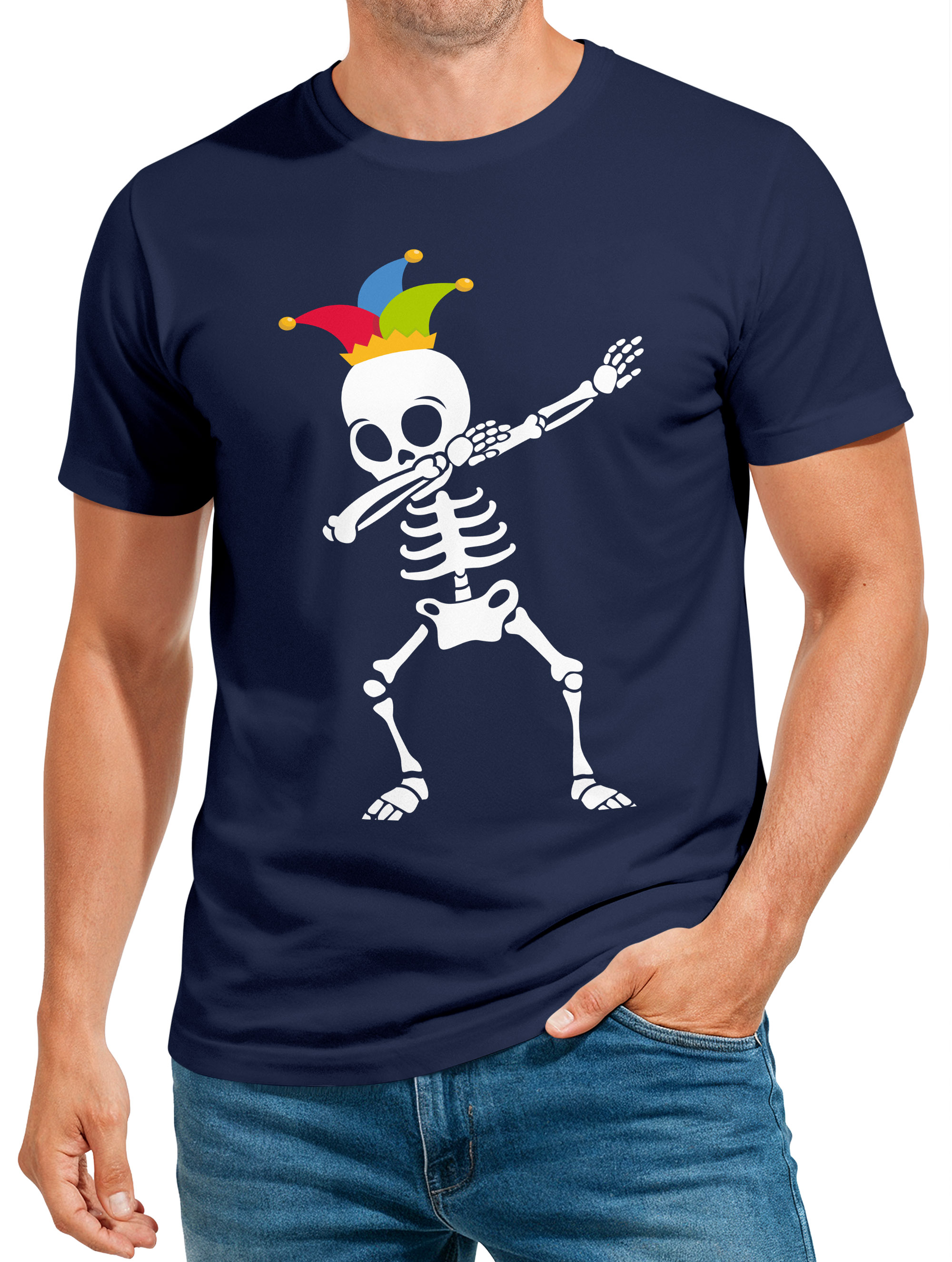 - Witziges Oberteil für Karnevals-Minimalisten. Das lustige Motiv mit Skelett in Dab Pose und Narrenkappe lässt ahnen, dass das närrische Treiben auch auf dem Friedhof in der 5. Jahreszeit hoch hergeht