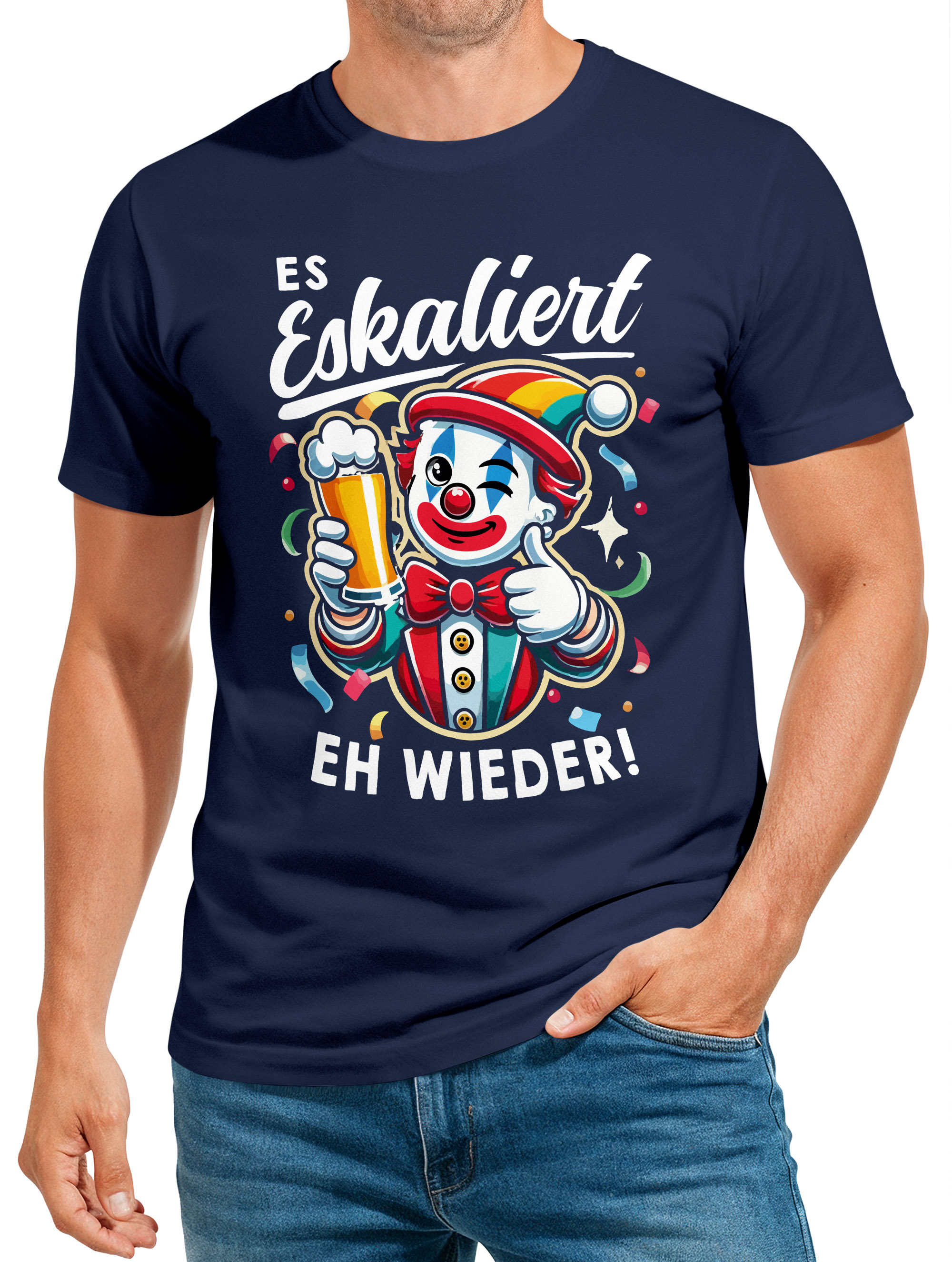 - Perfekt für Partylöwen: Dieses Shirt ist ideal für Karneval, Junggesellenabschiede, Geburtstagsfeiern oder Festivals – ein Must-have für alle feucht-fröhlichen Anlässe! Mit passendem Spruch "Es eskaliert eh wieder! Prost ;-)