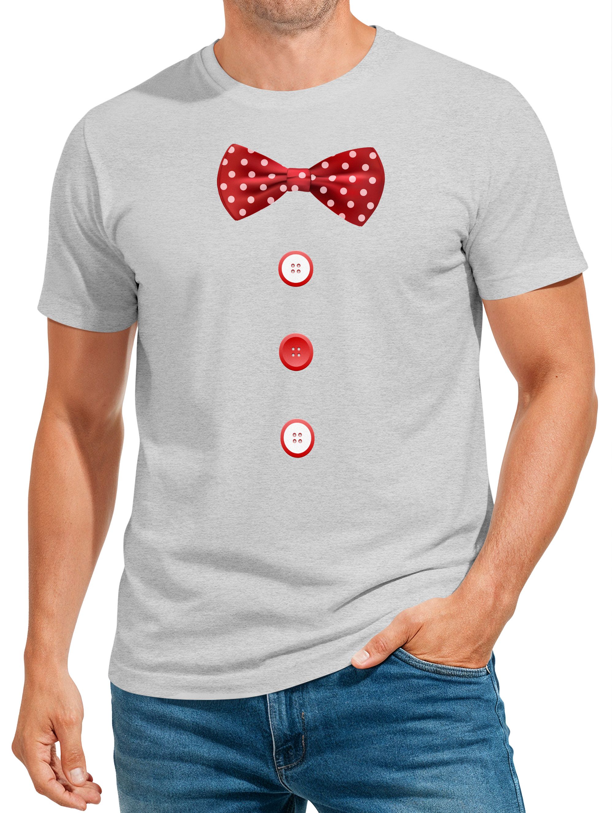 - Die lustige Alternative zu klassischen Faschingskostümen: lustiges Herren T-Shirt mit minimalistischem Faschings-Print der Marke MoonWorks® Bedruckt mit Fliege und bunten Knöpfen ist das Printshirt auch perfekt als Teil eines DIY-Clownskostüm für Erwachsene