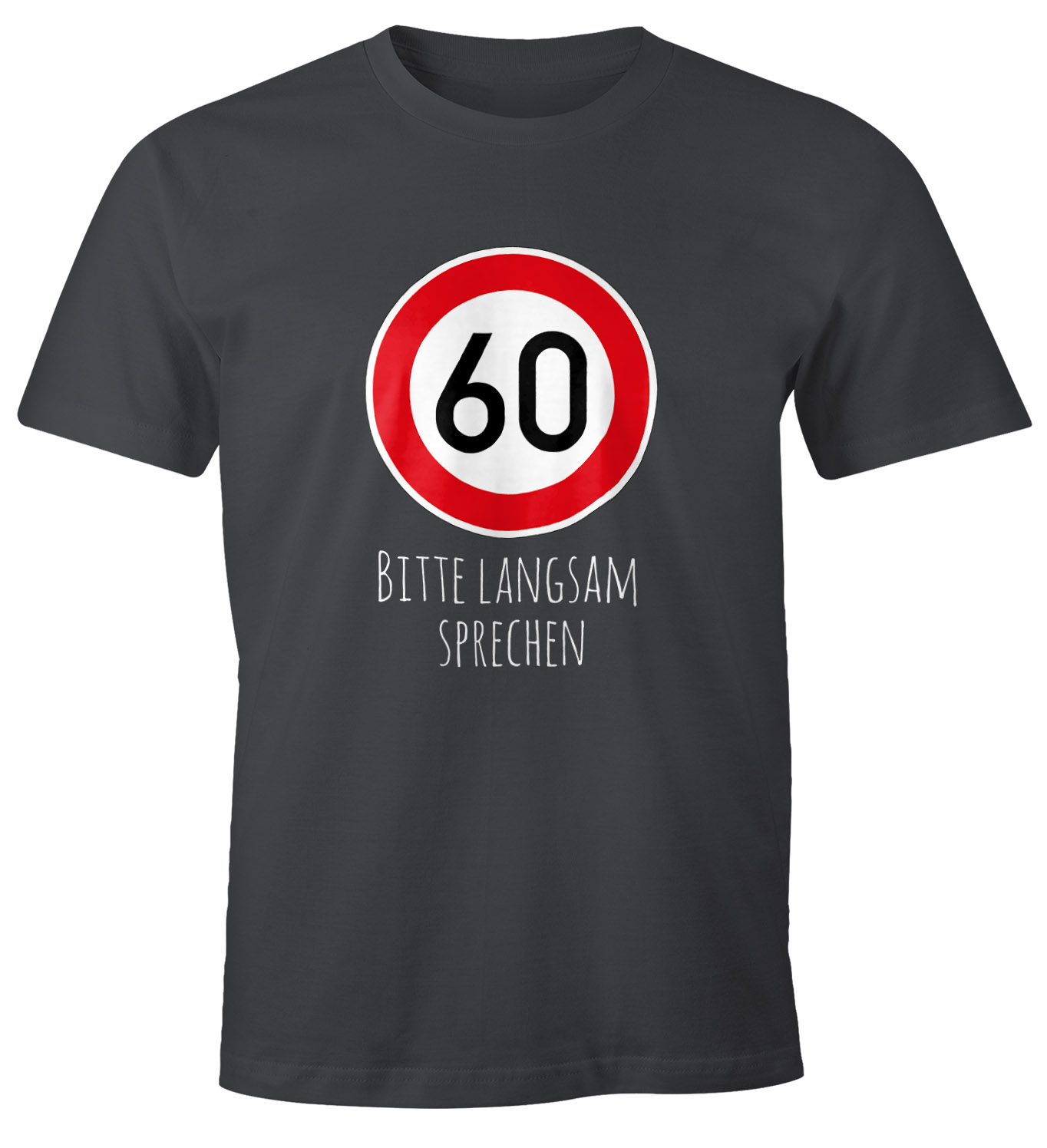- weil witzige Geschenke zu runden Geburtstagen einfach dazu gehören: lustiges Herren T-Shirt mit Alter {style_variation_string} im Straßenschild Design und "Bitte langsam sprechen" Spruch der Marke MoonWorks®