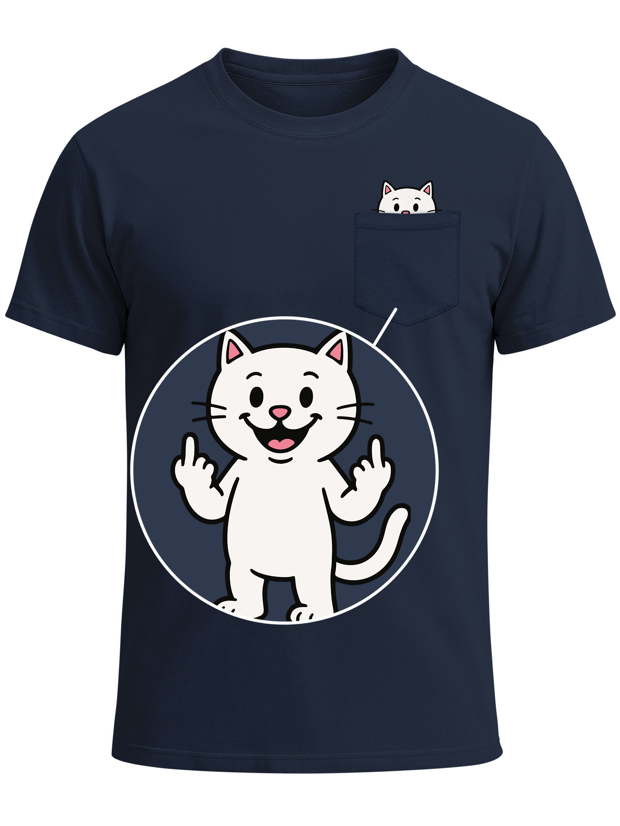 - Mach die Tasche zur Bühne: Lustige Mini-Illustrationen verstecken sich in der Brusttasche und bringen Humor direkt auf dein Shirt. Diese Katze zeigt frech beide Mittelfinger - pardon- Pfoten. Damit erübrigt sich ein Statement deinerseites