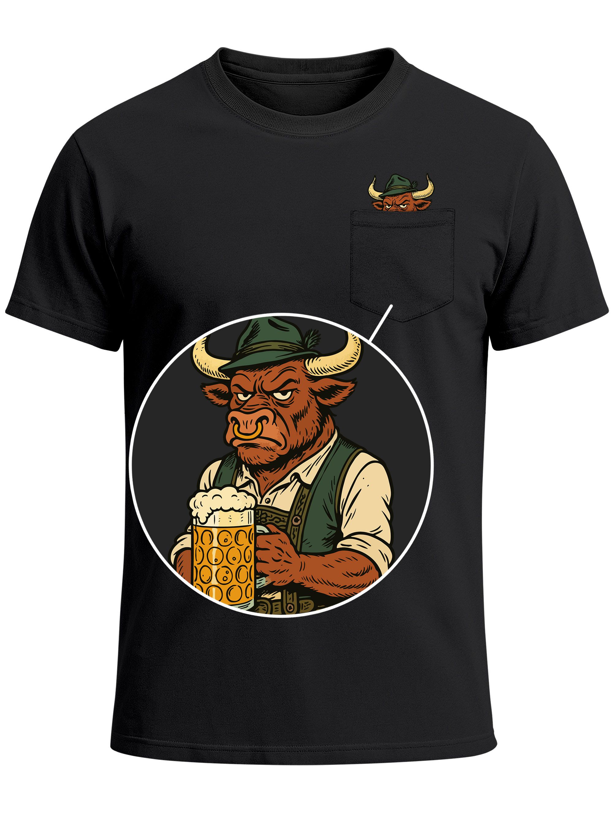 - Lustiges T-Shirt mit Brusttasche: Witziges "Wiesn-inspiriertes" Motiv, bei dem ein Grantler, ein Hirsch oder ein Ochse mit Maßkrug im Trachtenlook scheinbar aus der Tasche hervorschaut - Ideal für Volksfest, Biergarten oder als originelles Geschenk für Männer mit Humor und Liebe zur bayrischen Tradition