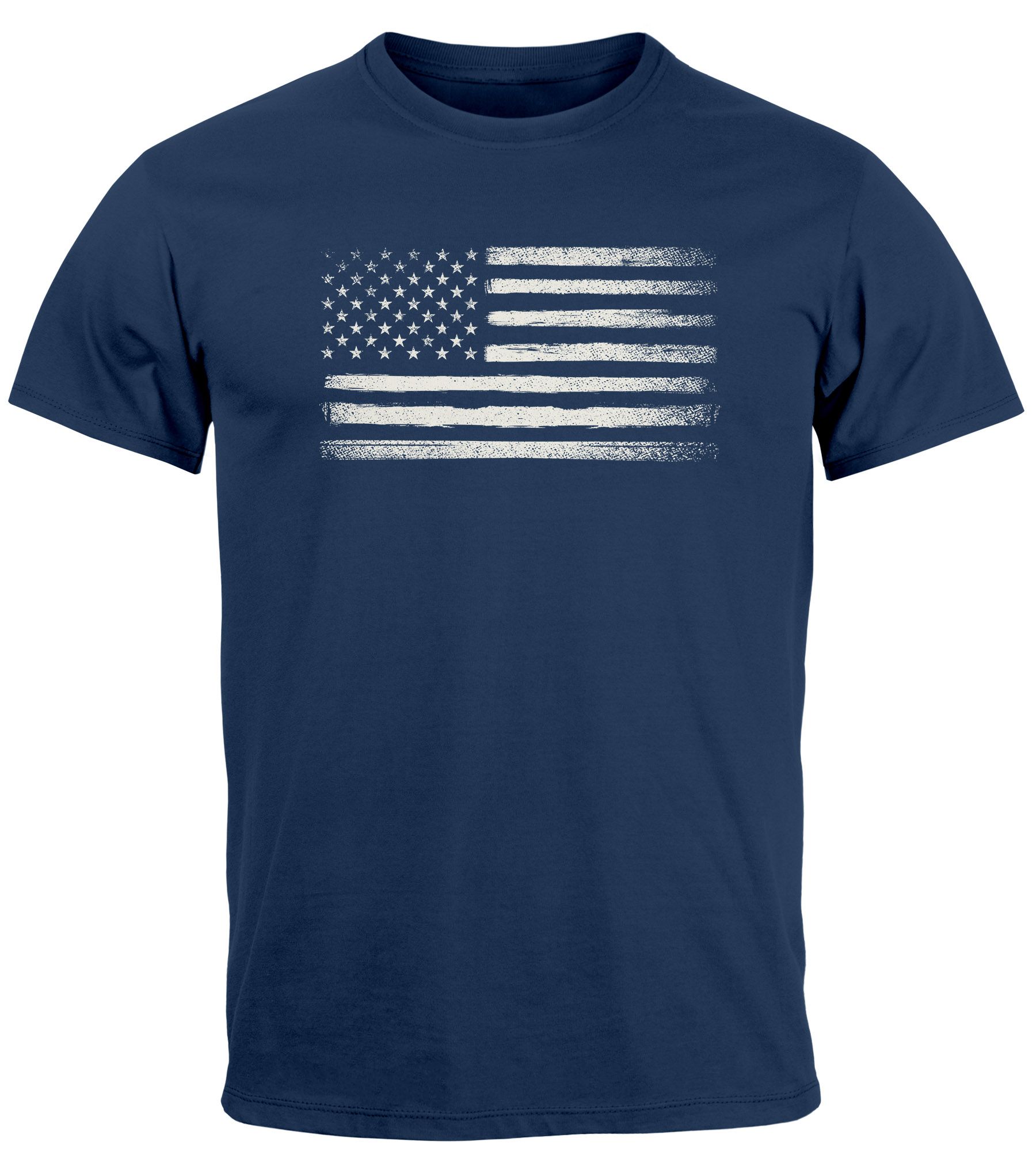 - Dieses Männer-T-Shirt mit großem Frontdruck einer stylischen USA-Flagge im Used-Look bringt patriotischen Flair in deinen Kleiderschrank. Der Vintage-Effekt verleiht dem Shirt einen lässigen Charme, der sowohl in der Stadt als auch bei Outdoor-Abenteuern überzeugt.