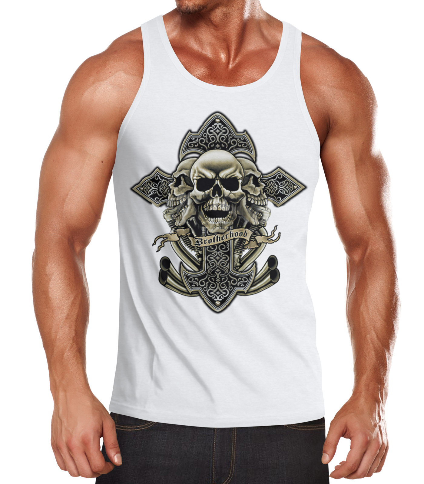 Herren Tank-Top Kreuz mit Totenkopf Cross Skulls Muscle Shirt Neverless®