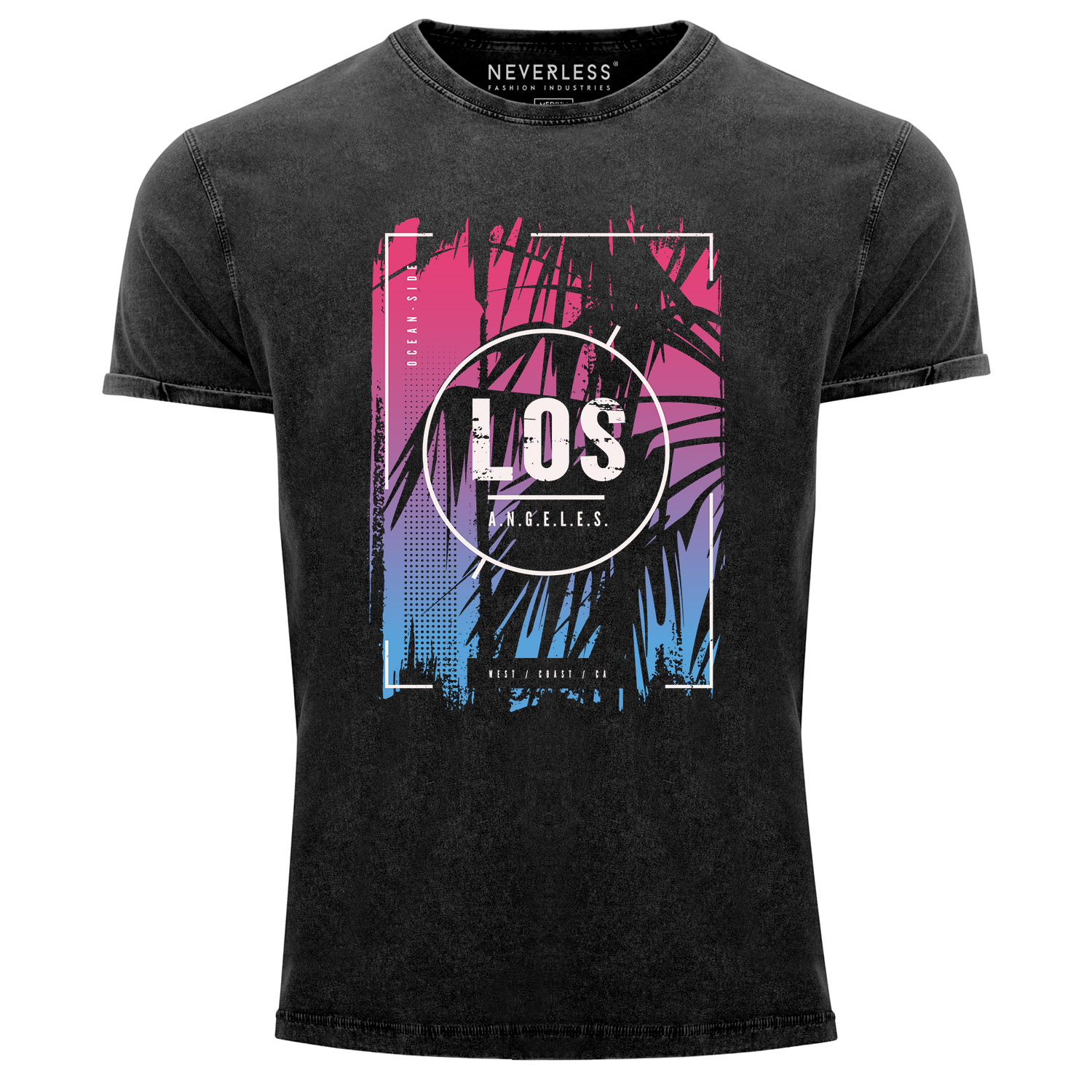 Herren Vintage Shirt Los Angeles Retro 80er Style Palmen USA Sunset Boulevard Fashion Streetstyle Used Look Neverless®