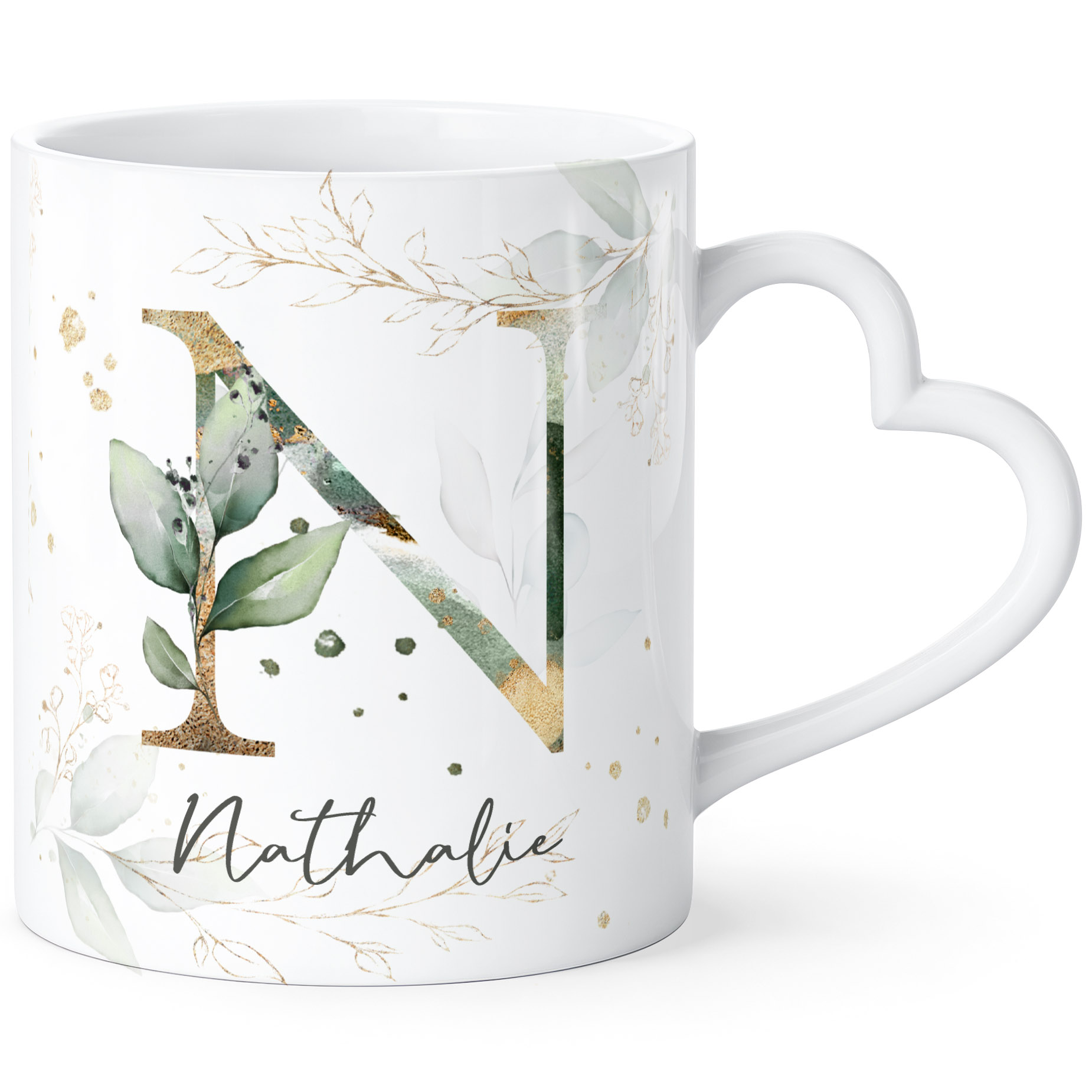 - Wunderschöne Namenstasse mit Herzgriff und zartem Lorbeerblatt-Dekor. Der Name und die Initale sind online individuell anpassbar. Wer ein besonderes personalisiertes Geschenk zum Geburtstag oder ein persönliches kleines Dankeschön verschenken möchte, macht mit dieser Tasse definitv alles richtig