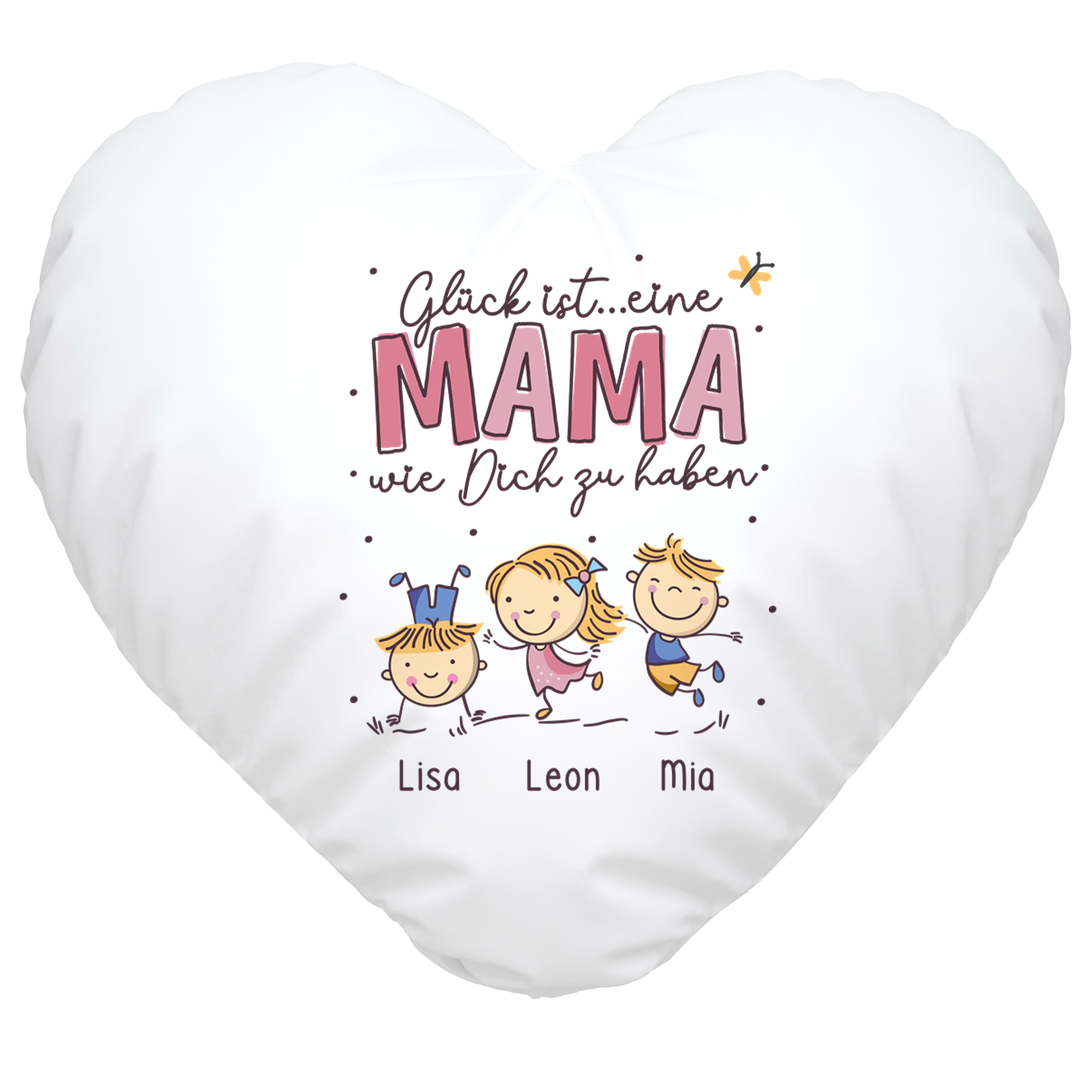 - Über kleine Geschenke von ihren Kindern freut sich jede Mutter. Eine beonders niedliche Geschenk-Idee ist diese personalisierbare Kissenhülle mit Strichmännchen-Motiv und Spruch "Glück ist eine Mama wie dich zu haben."Die Figuren sind online personalisierbar mit den Namen