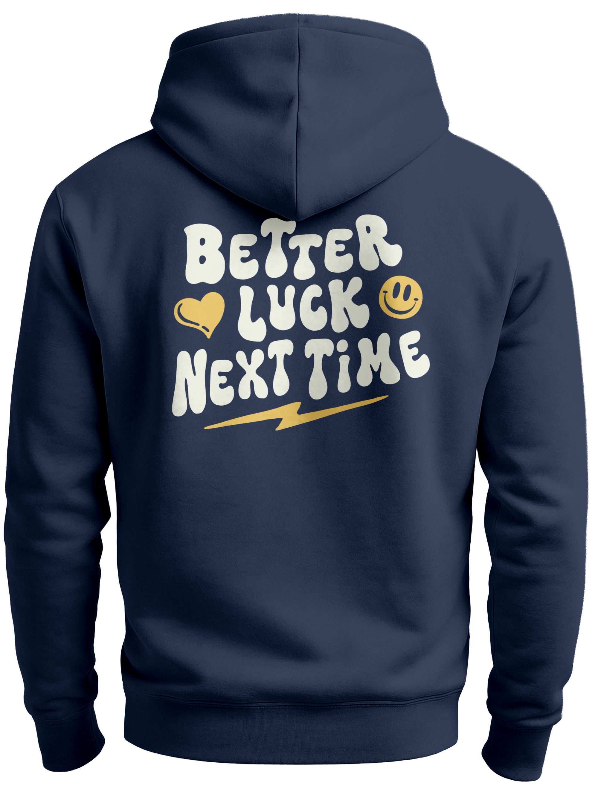- Mach dein Outfit zum Hingucker mit unserem Kapuzenpulli für Männer bedruckt mit Spruch. Mit witzigem Statement "Better Luck next Time" ist dieses Oberteil ein Must Have für alle die ausgefallene Grafik-Oberteile lieben