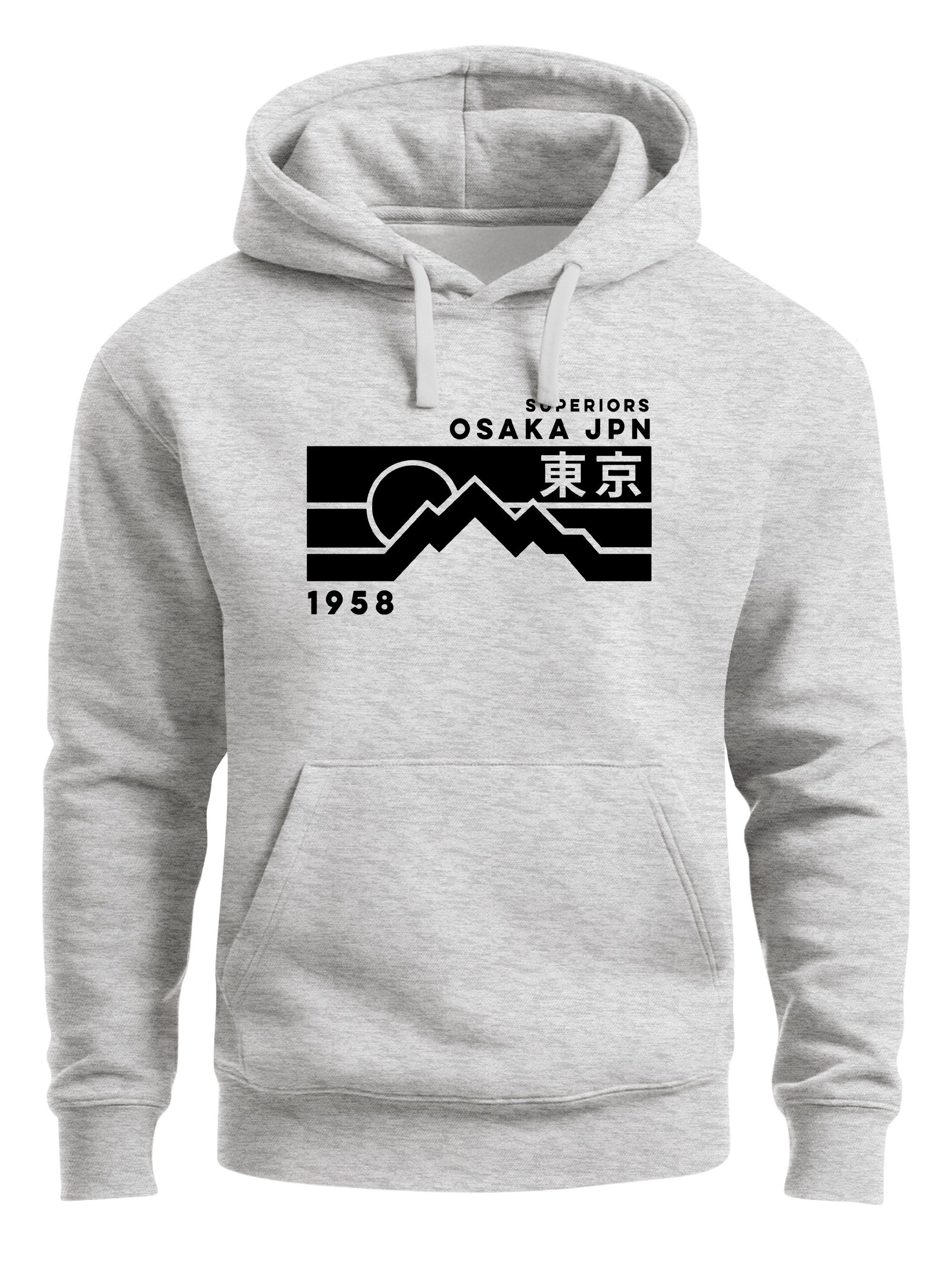 - Key-Piece für kühle Tage der Marke Neverless® . Lässiger Hoodie für Herren mit Aufdruck "Osaka JPN" und japanischen Schriftzeichen der Marke Neverless®. Erhältlich in den zeitlosen, klassischen Farben schwarz, weiss und grau