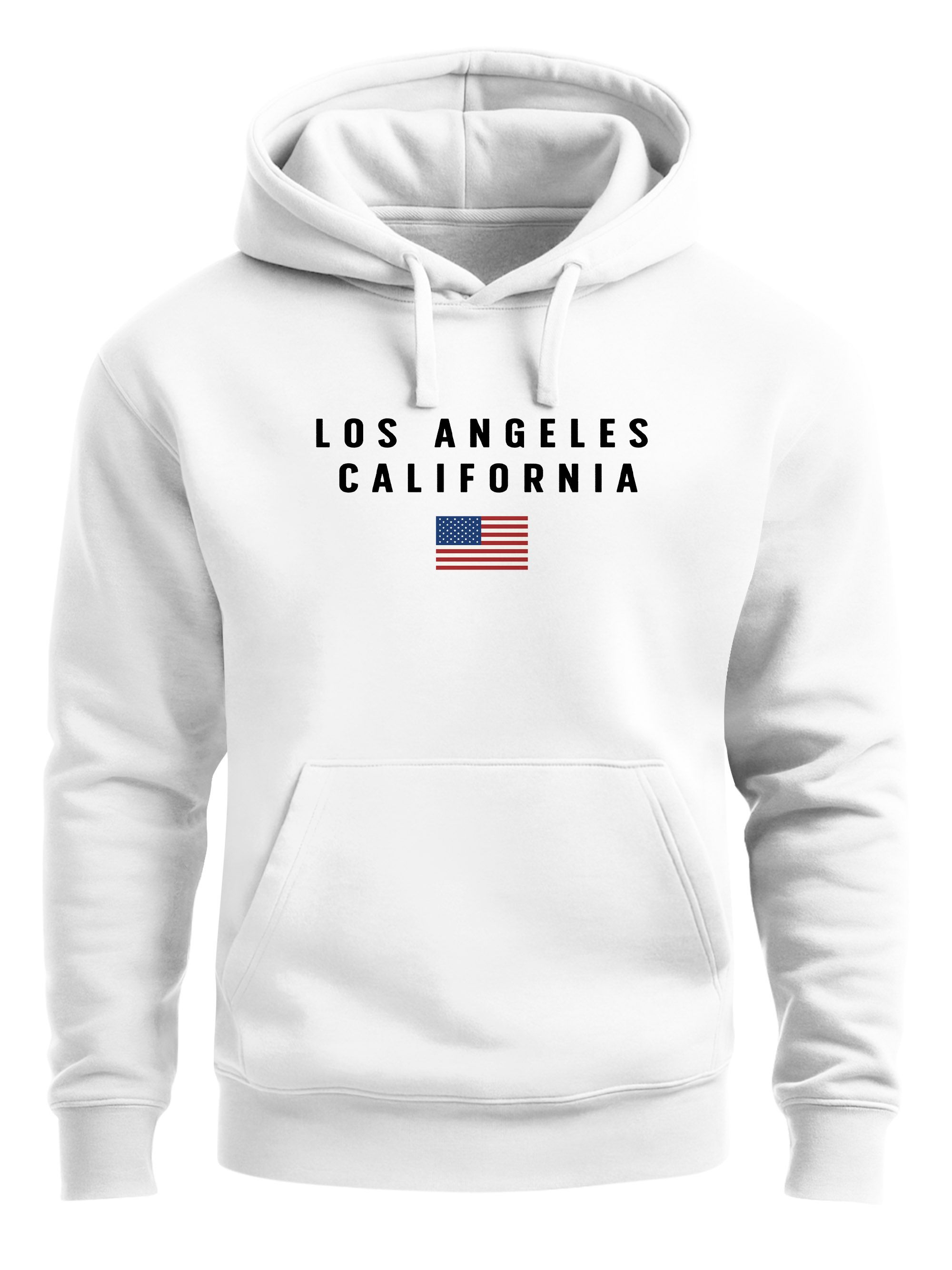 - Cooler Kapuzenpullover für Männer mit minimalistischem Design. Das ultimative Oberteil für Amerika Fans. Der cleane Print mit "Los Angeles - California" Schrift und amerikanischer Flagge passt zu vielen Freizeit-Outfits