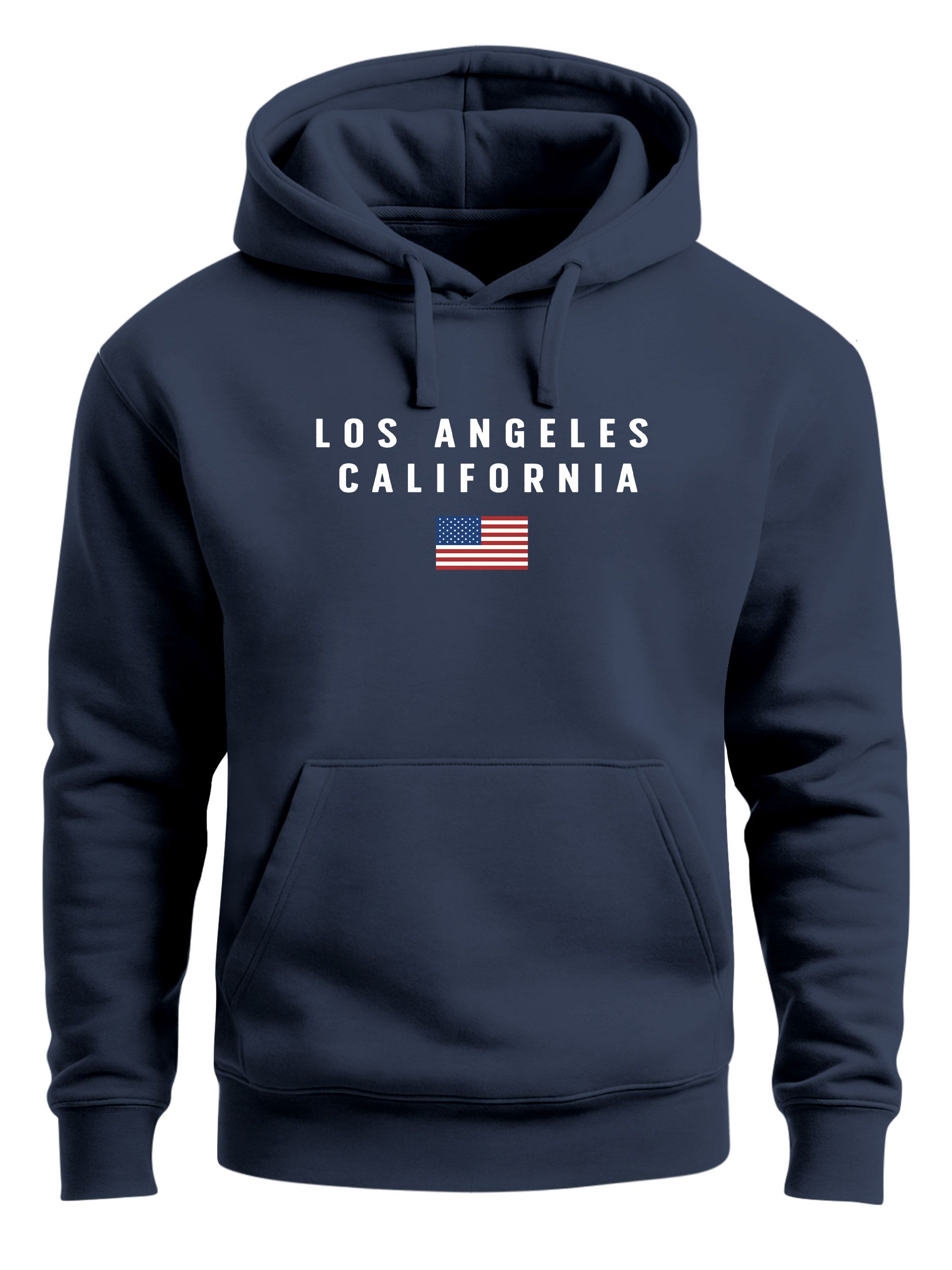 - Cooler Kapuzenpullover für Männer mit minimalistischem Design. Das ultimative Oberteil für Amerika Fans. Der cleane Print mit "Los Angeles - California" Schrift und amerikanischer Flagge passt zu vielen Freizeit-Outfits