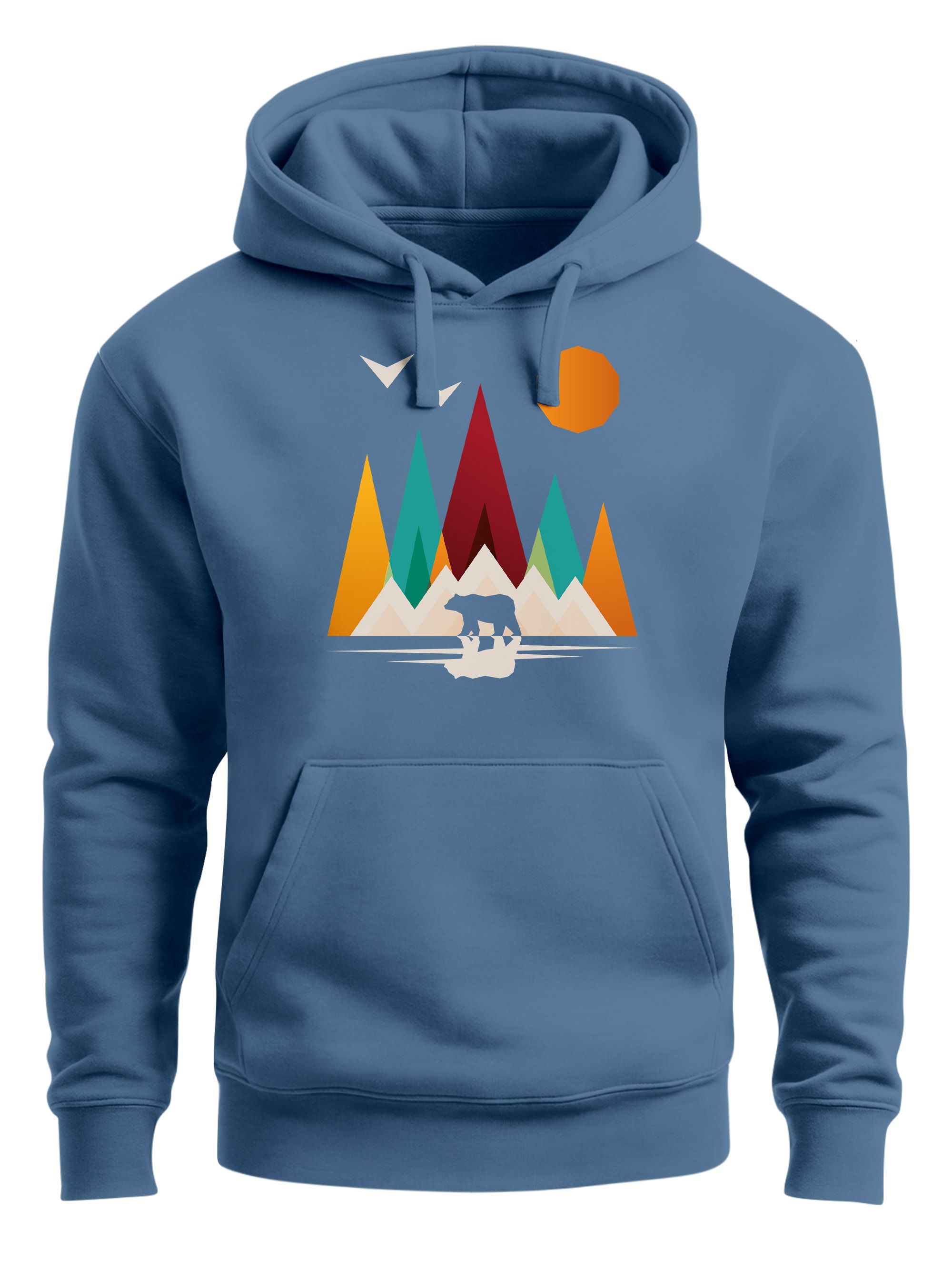 - Outdoor meets Minimalismus – Der lässige Look dieses Kapuzenpullovers mit minimalistischem Frontprint verleiht deinem Outfit einen authentischen, retro-inspirierten Stil. Das abstrakte Natur-Motiv mit Bergen, Bär und Wald ist perfekt für Natur-Liebhaber, die Outdoor-Aktivitäten lieben