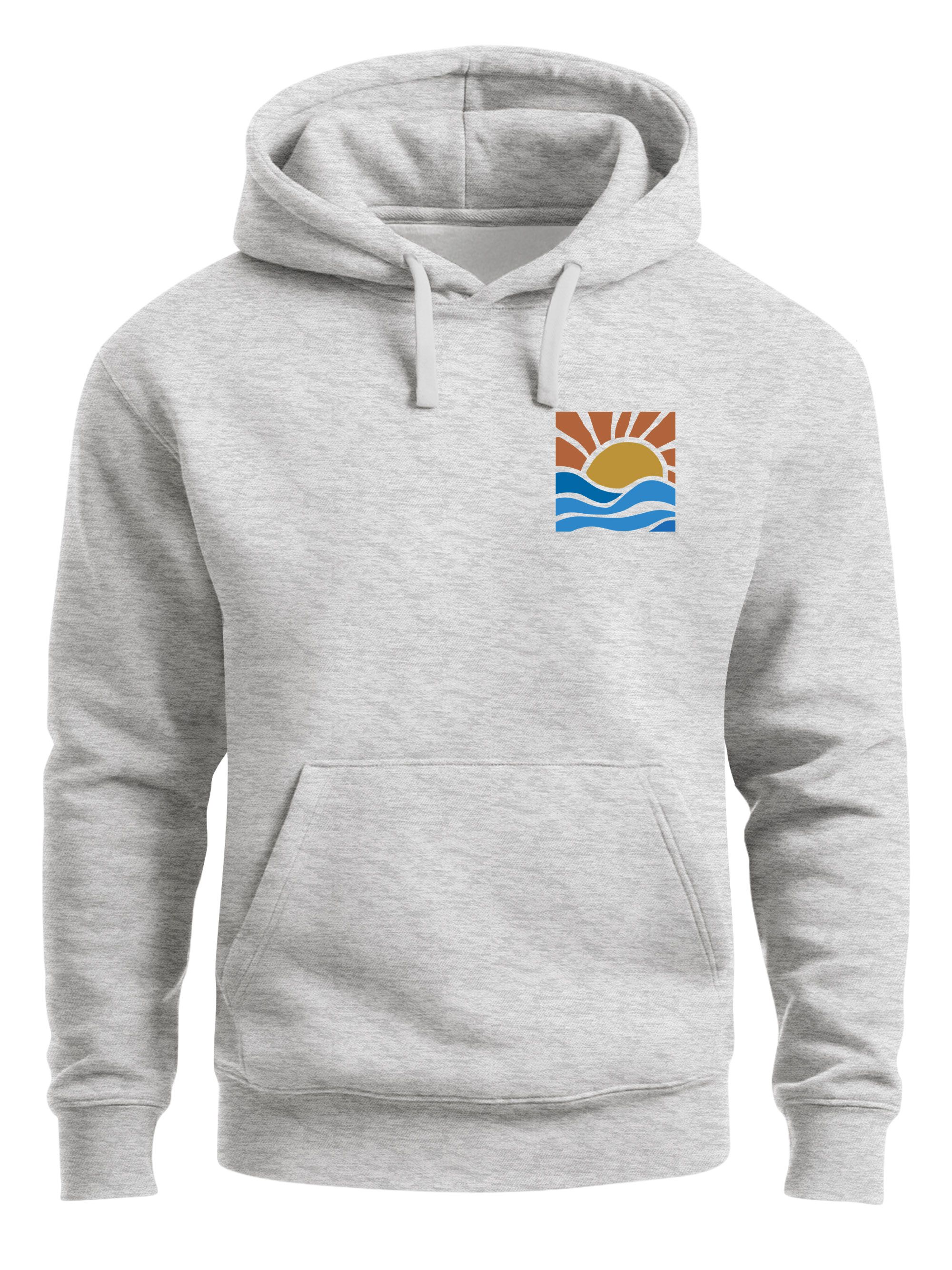 - Motiv: Badge/Logoprint auf linker Brust, Welle Sonne, Line-Art