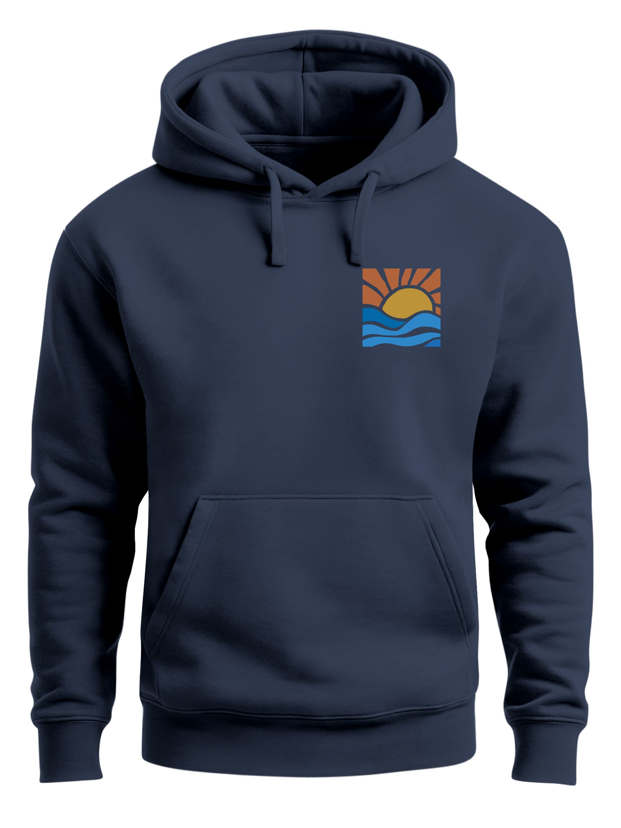 - Motiv: Badge/Logoprint auf linker Brust, Welle Sonne, Line-Art