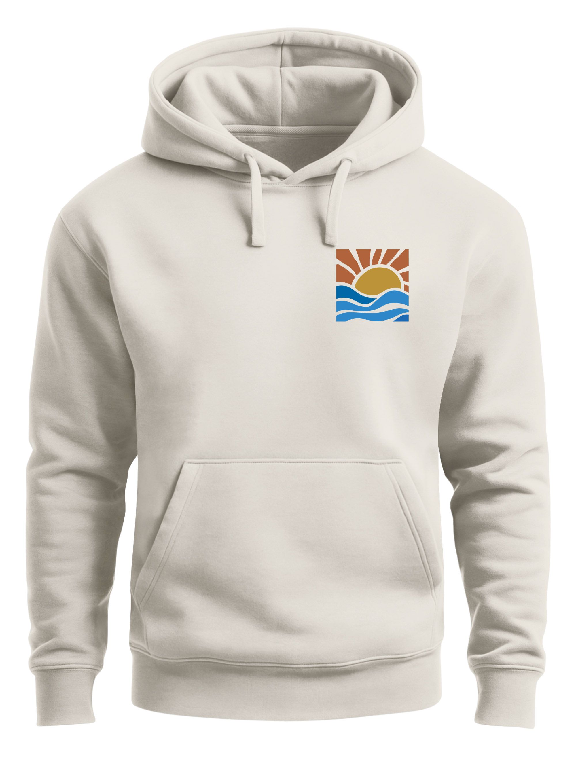 - Motiv: Badge/Logoprint auf linker Brust, Welle Sonne, Line-Art