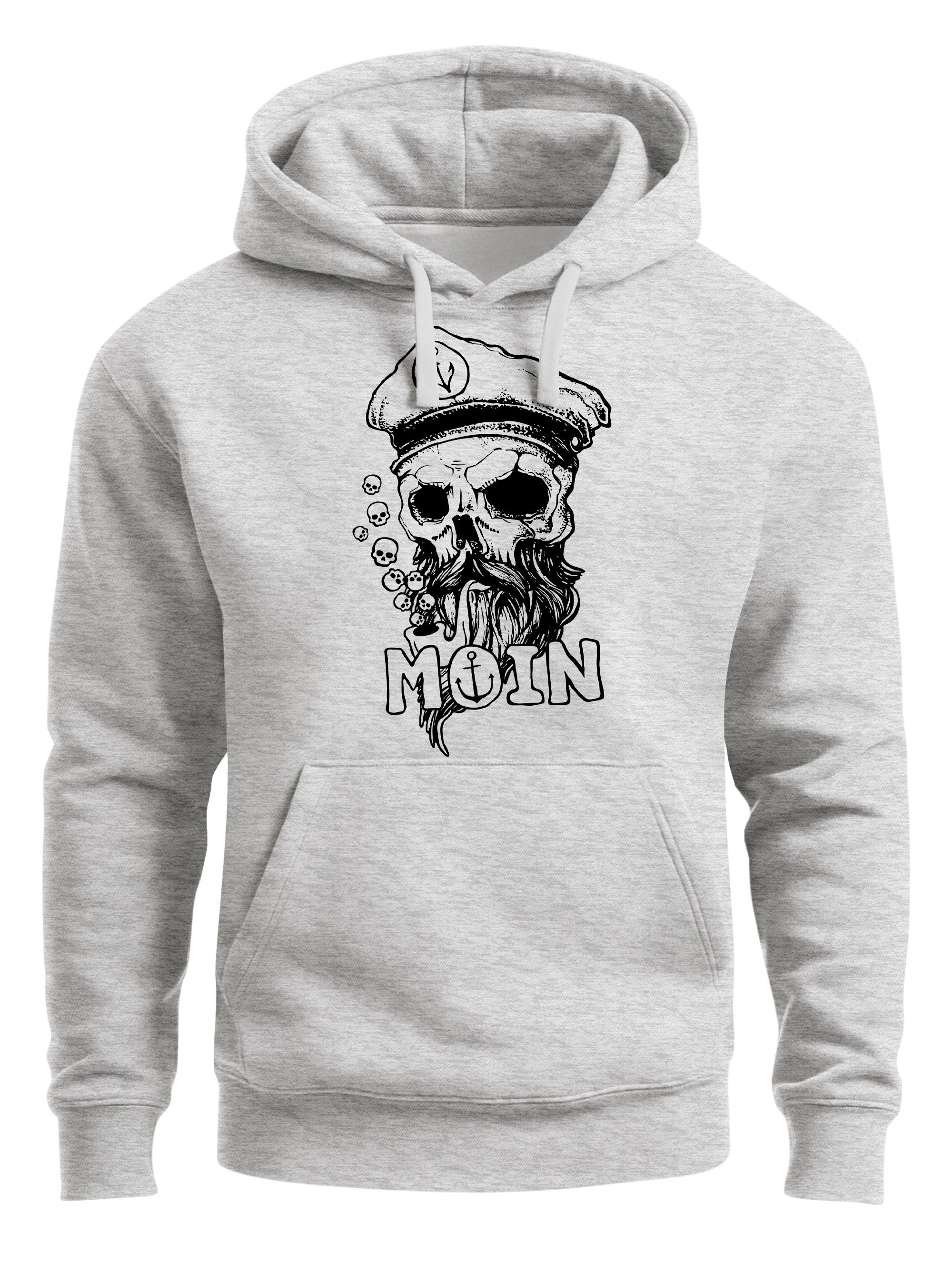 - Witziges und gleichzeitig stylisher Kapuzen-Pullover mit norddeutschem Gruß "Moin". In Kombination mit dem lustigen, Peife "rauchenden" ;-) Totenkopf mit Kapitänsmütze und Bart ein echter Augenschmaus für Nordlichter ...und alle anderen, die auf coole Printshirts stehen