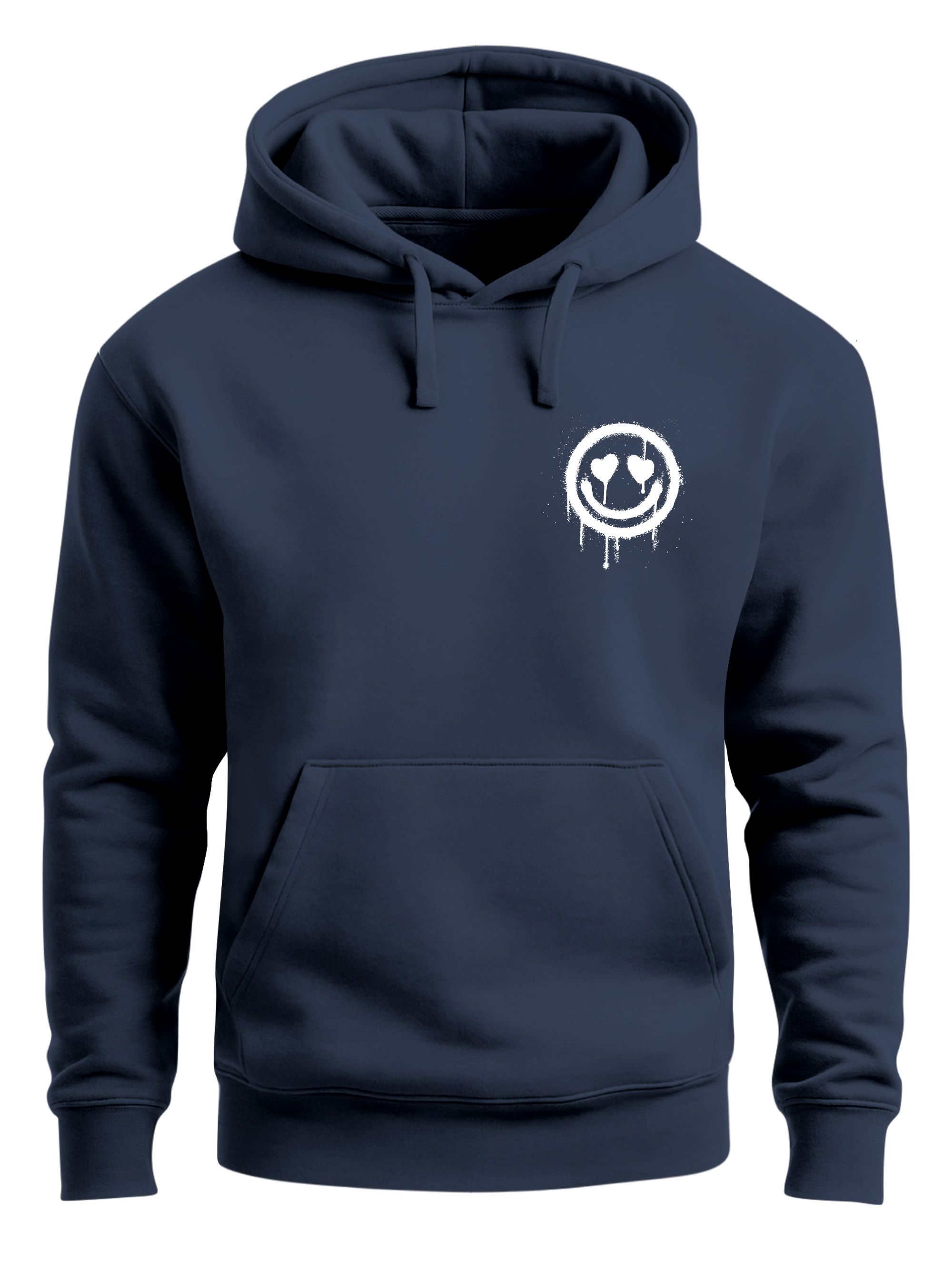- Kapuzen-Pullover für Männer mit kleinem "Smile" Logo. Auf der linken Brust ziert diesen Kapuzenpulli für Männer ein kleines Emblem im Graffity Style. Ein Basic-Hoodie, der zu vielen Looks und Gelegenheiten passt