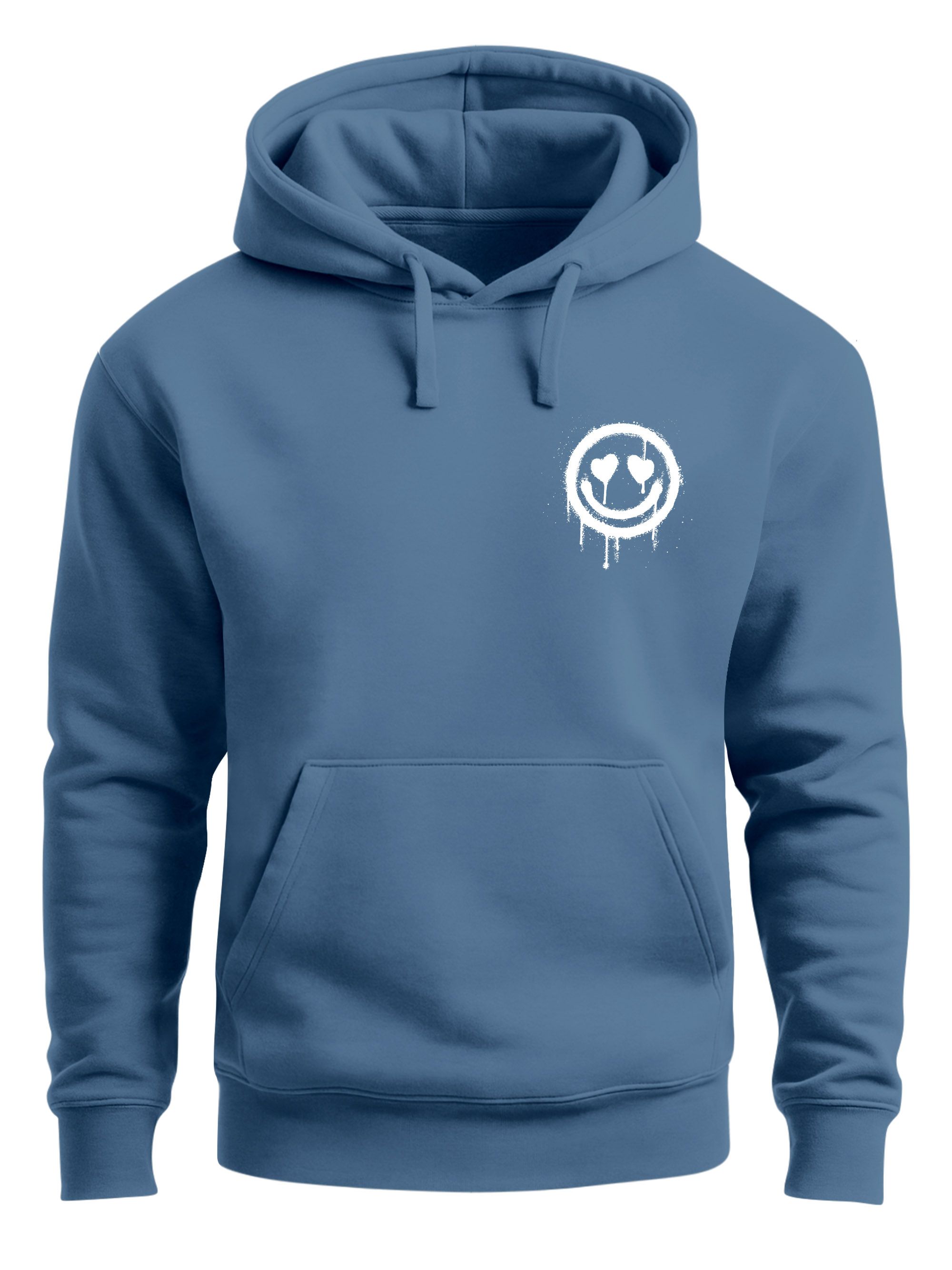 - Kapuzen-Pullover für Männer mit kleinem "Smile" Logo. Auf der linken Brust ziert diesen Kapuzenpulli für Männer ein kleines Emblem im Graffity Style. Ein Basic-Hoodie, der zu vielen Looks und Gelegenheiten passt
