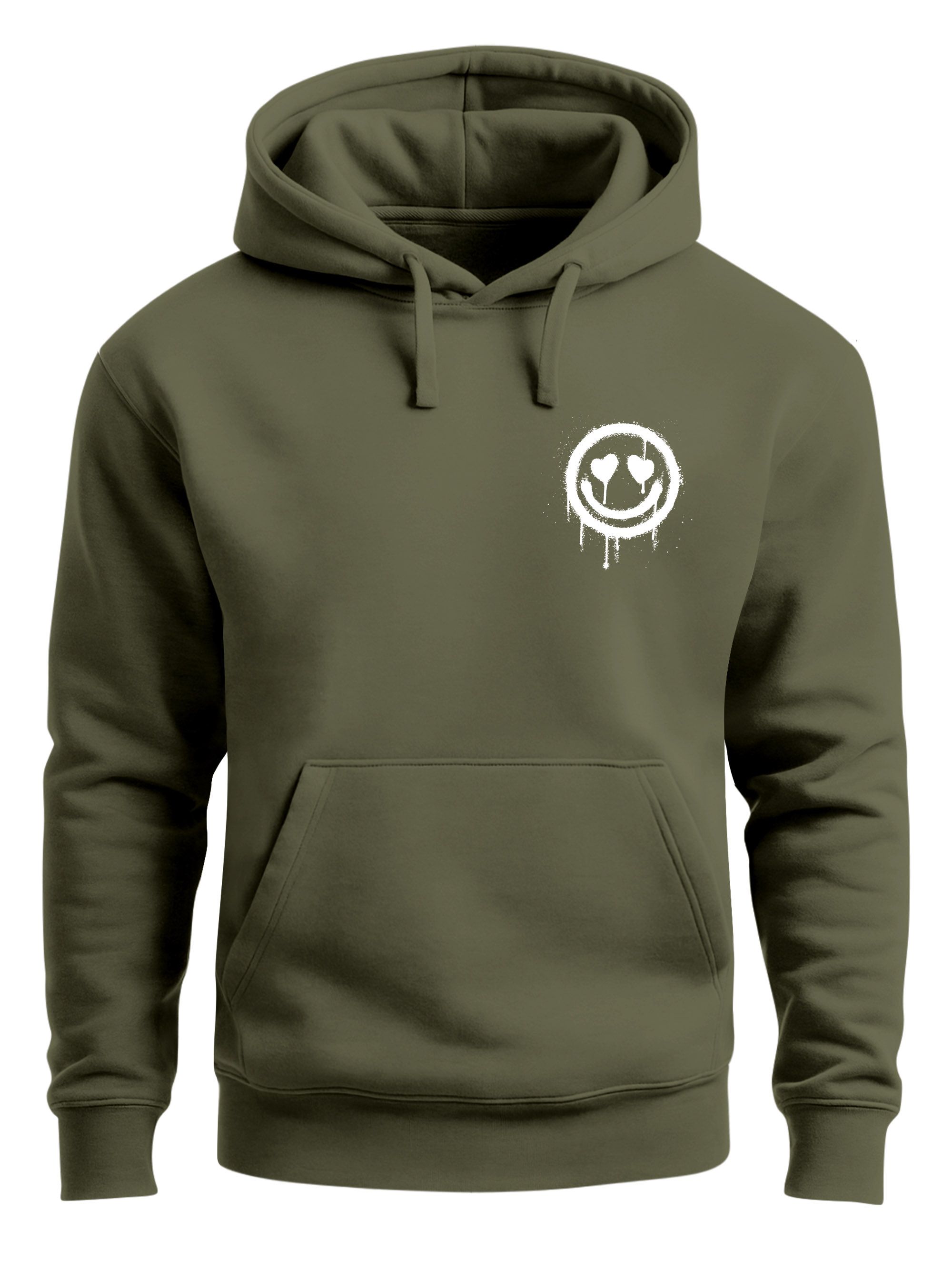 - Kapuzen-Pullover für Männer mit kleinem "Smile" Logo. Auf der linken Brust ziert diesen Kapuzenpulli für Männer ein kleines Emblem im Graffity Style. Ein Basic-Hoodie, der zu vielen Looks und Gelegenheiten passt