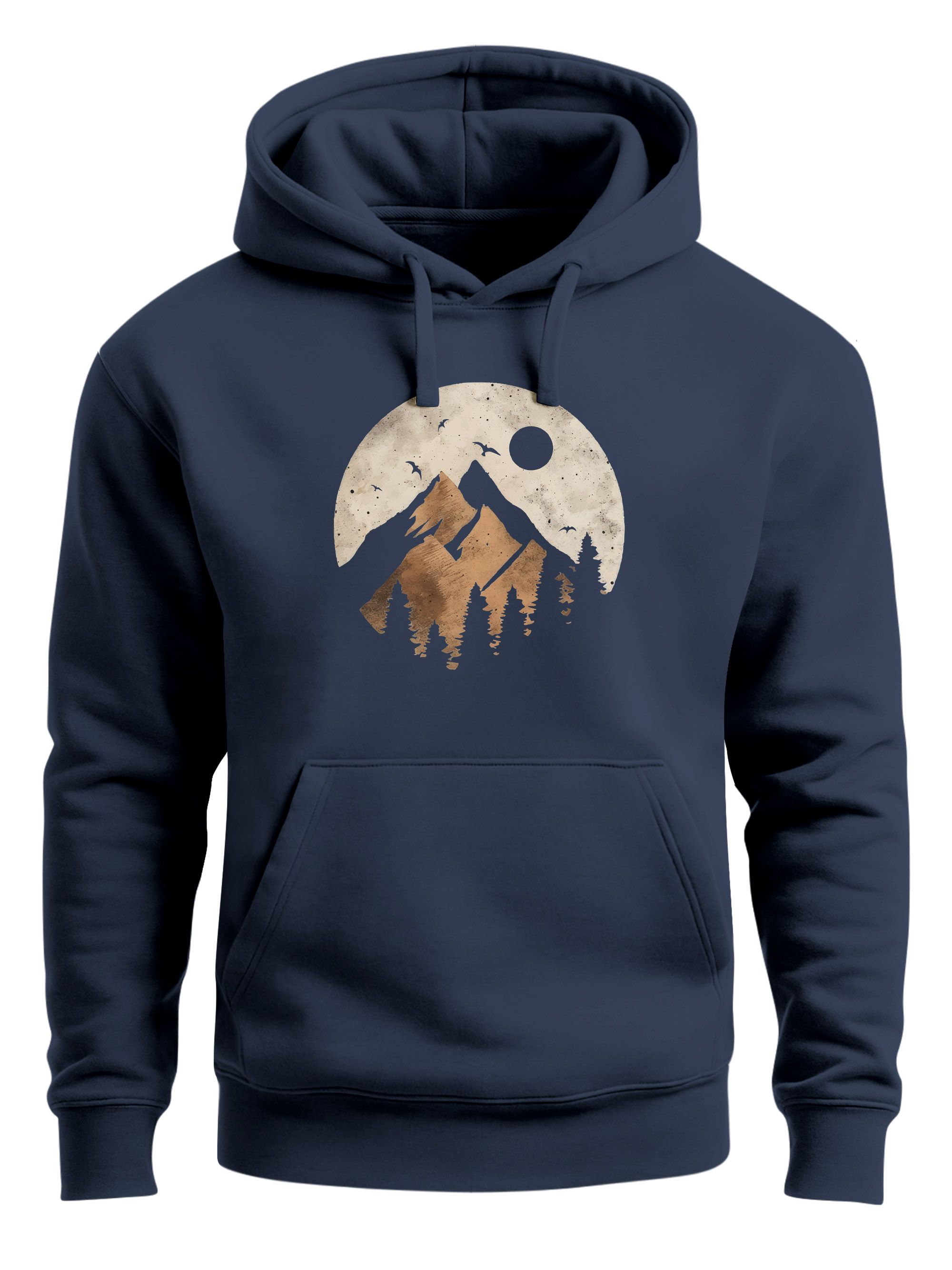 - Moderner Herren Hoodie mit Bergmotiv, Wald und Sonnenuntergang im Vintage-Stil. Perfekt für Outdoor-Fans, Wanderer und Naturfreunde, die einen stylischen Kapuzenpullover für Freizeit, Abenteuer und Streetwear-Looks suchen