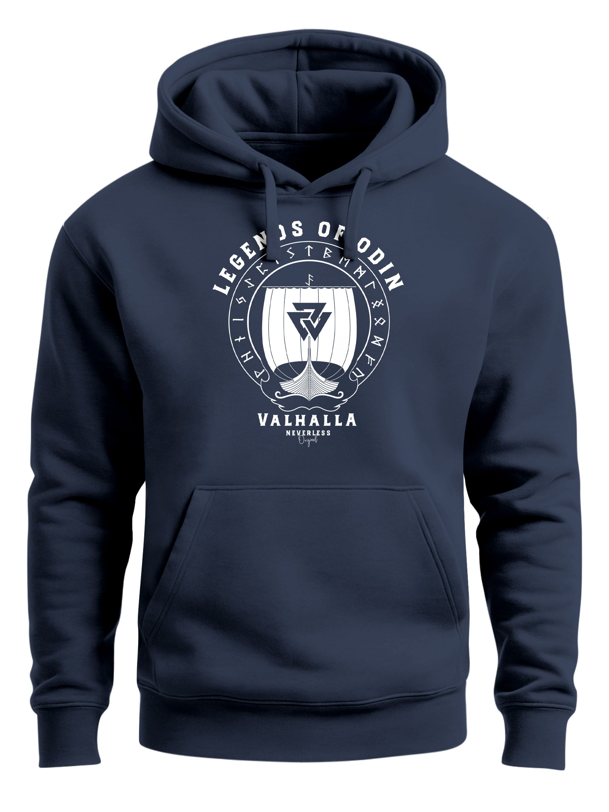 - Key-Piece für kühle Tage der Marke Neverless®. Cooler Hoodie für Herren mit ultimativ gutem Viking Print und "Legends of Odin" Schriftzug. Gekleidet in diesem lässigen Kapuzen Pullover ist dir der Einzug in Valhalla sicher