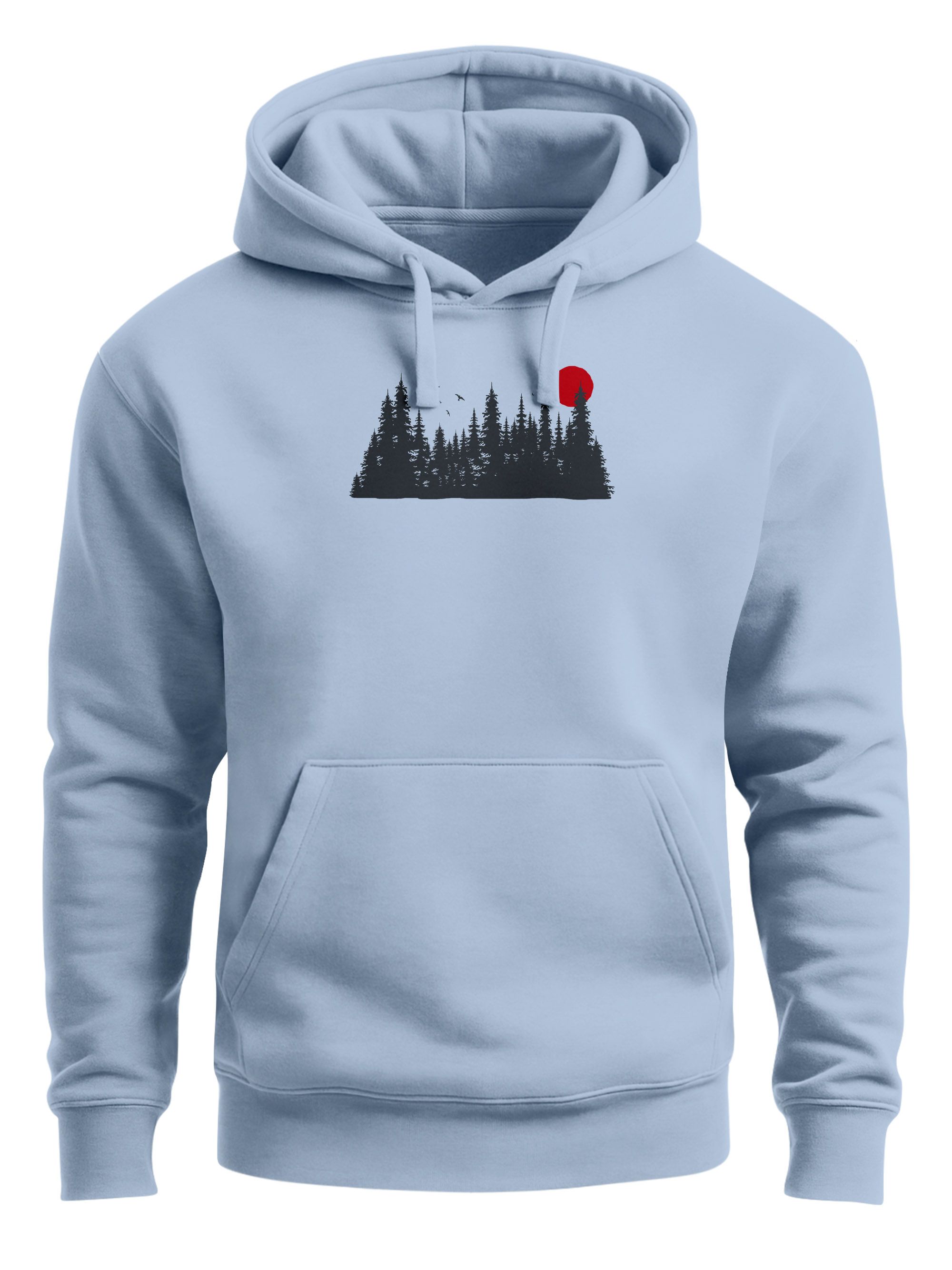 - Kapuzensweatshirt mit starkem Kontrastprint aus Bäumen und Sonne. Ideal für Naturfreunde und Abenteurer – ein moderner Männer Hoodie für Freizeit und Outdoor Aktivitäten