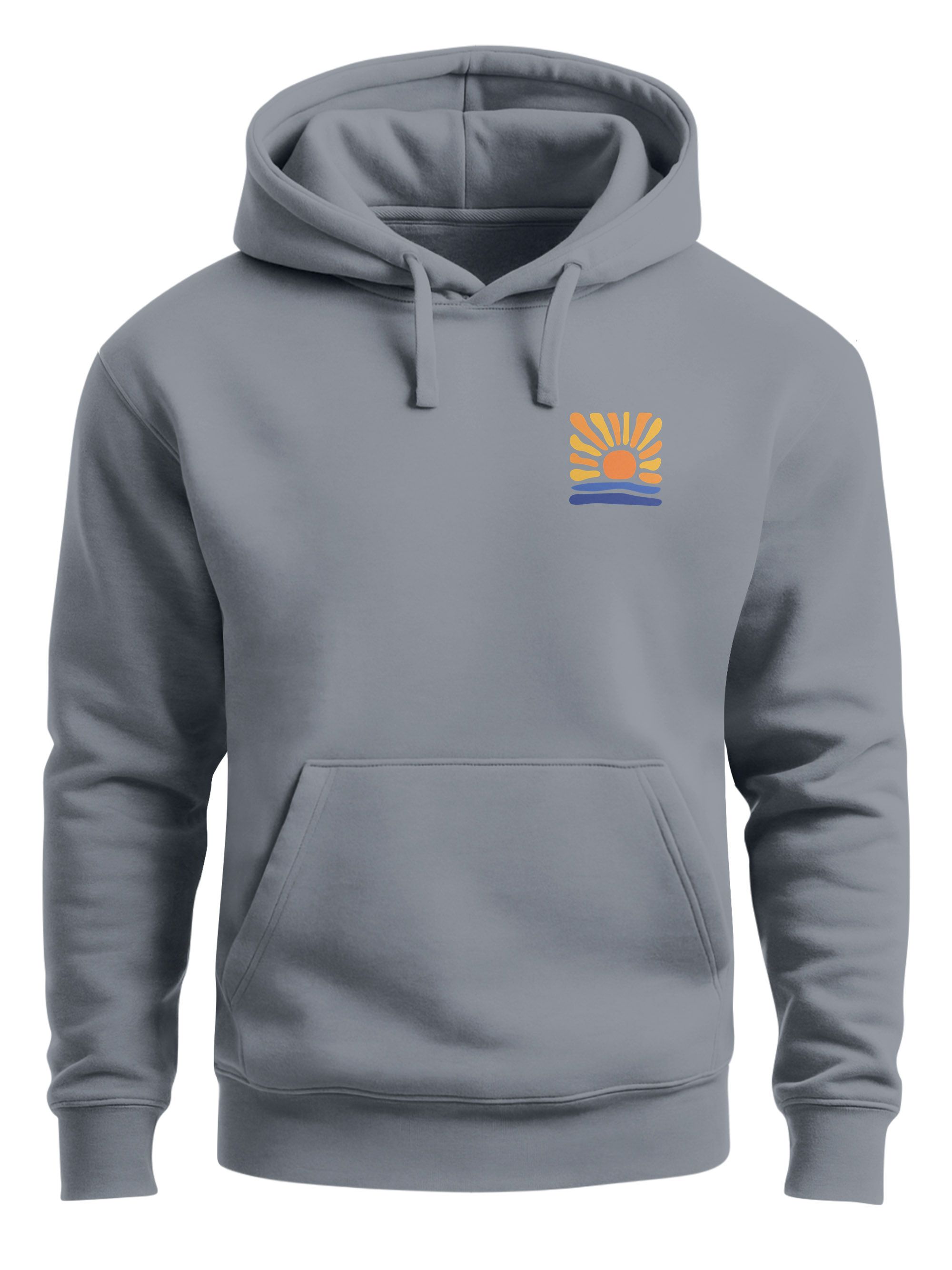 - Stylischer Männer Hoodie mit Sonne und Meer als Brustmotiv. Ideal für Freizeit, Sommer und Casual Outfits mit Beach und Outdoor Charakter.