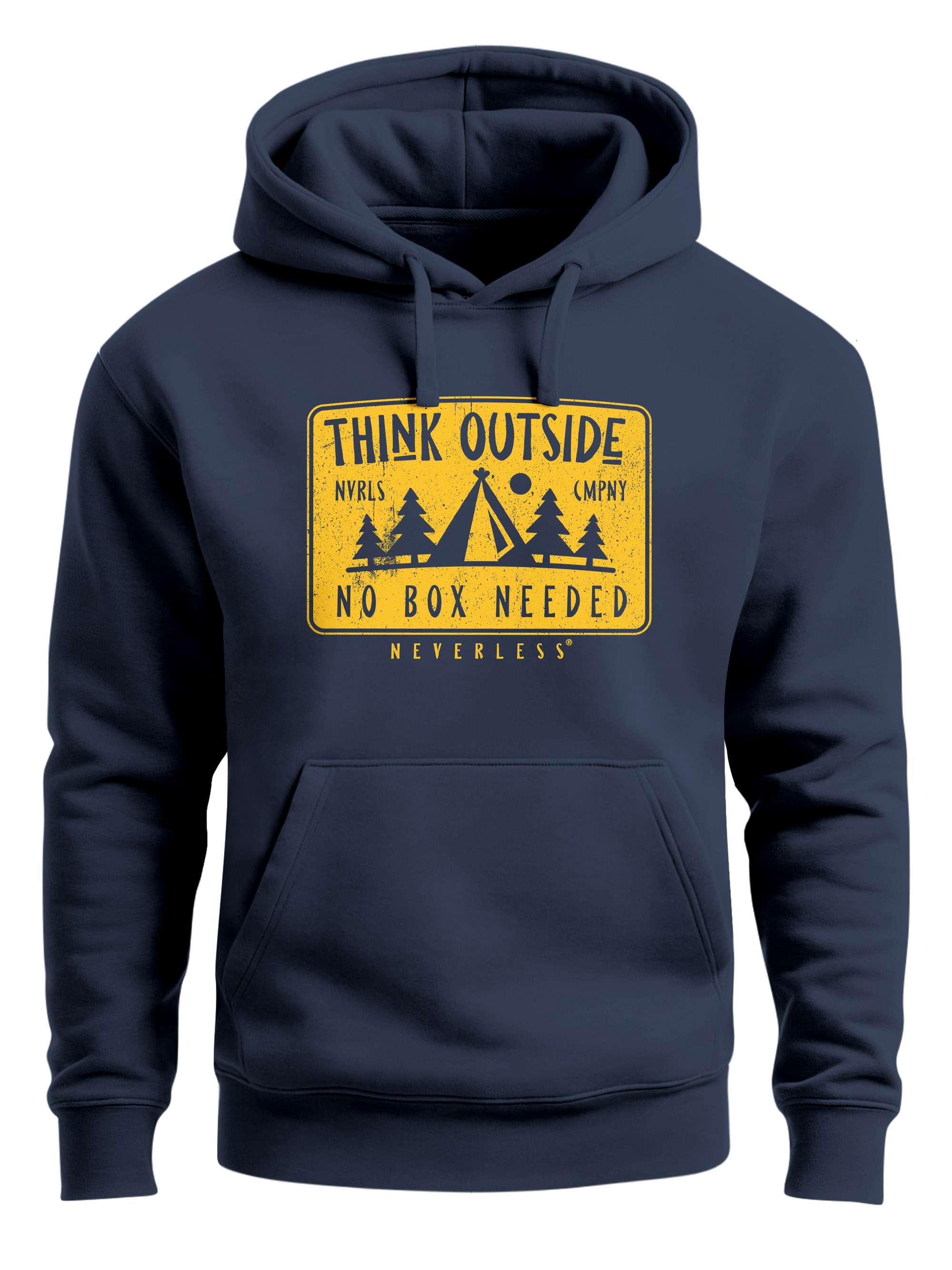 - Top für Sport und Freizeit – egal ob auf der Straße oder in der Natur - dieser Herren-Hoodie passt immer. Mit coolem Statement Print "Think outside -no Box needed" respektive "Think outside the Box" ist das Design perfekt für Outdoor Liebhaber und Individualisten