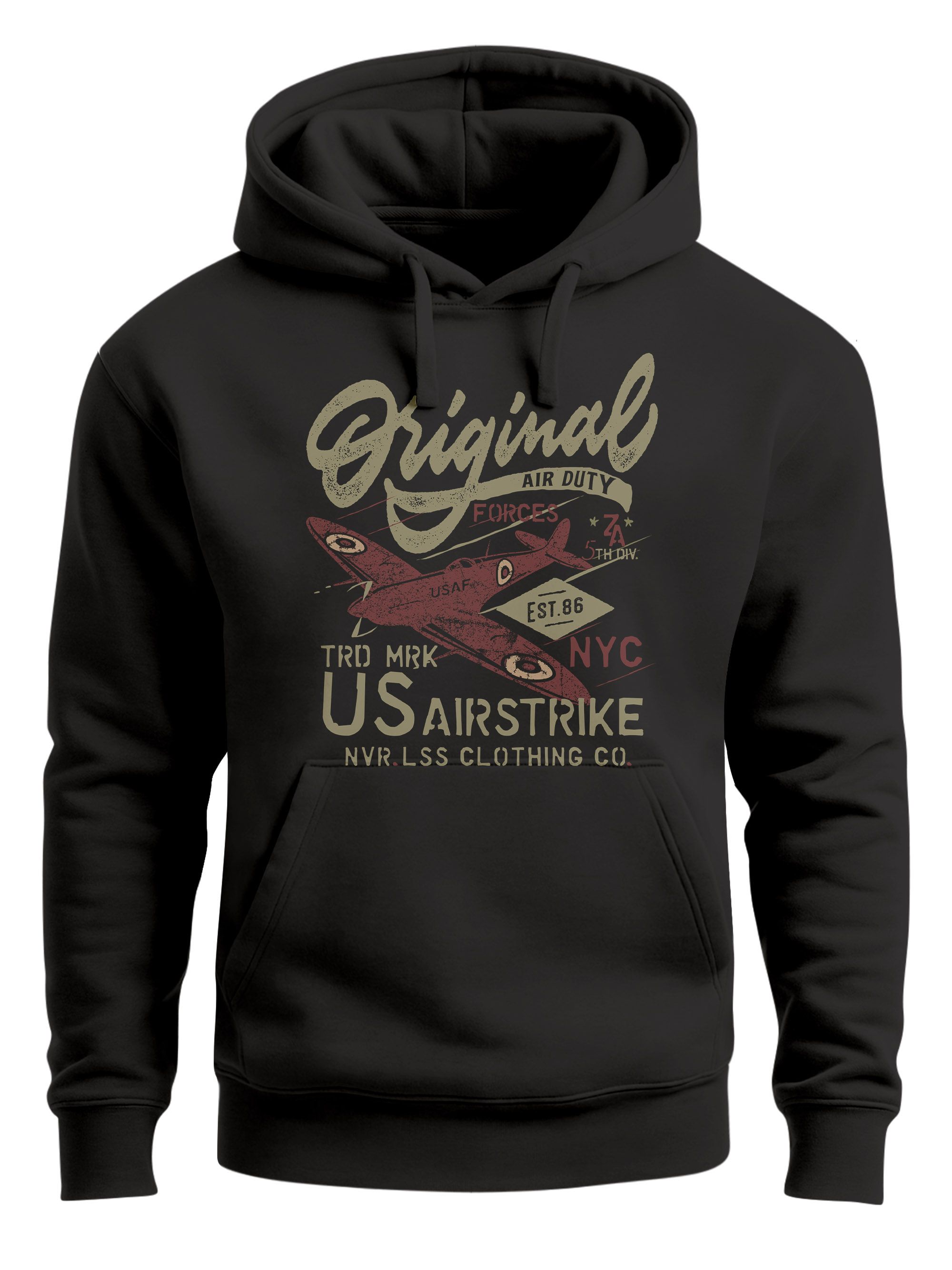 - Key-Piece für kühle Tage der Marke Neverless® Lässiger Hoodie für Herren Aufdruck mit einer Spitfire und dem Retro Schriftzug "Original US Airstrike". Das geniale Motiv ist ein echter Eyecatcher und ein Must have für alle Luftfahrt- und Army Fans und Fans von Retro Print-Shirts