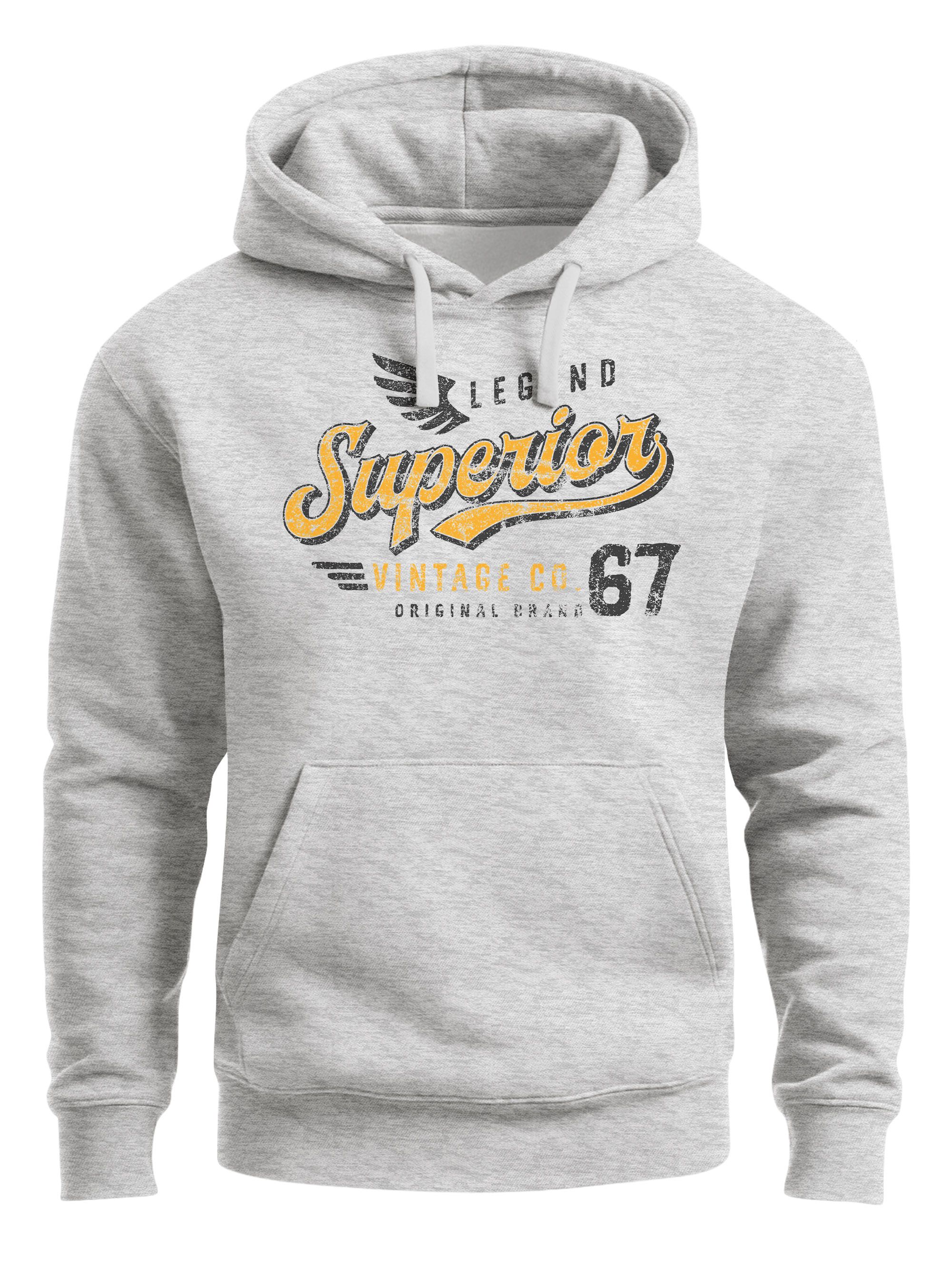 - Key-Piece für kühle Tage der Marke Neverless®. Lässiger Hoodie für Herren mit coolem Retro Print "Superior Legend" mit Flügel. Das Motiv ist zeitlos und trendig zugleich und das Design überzeugt mit coolen Vintage Effekten. Online bestellbar in den Farben schwarz, weiss und grau
