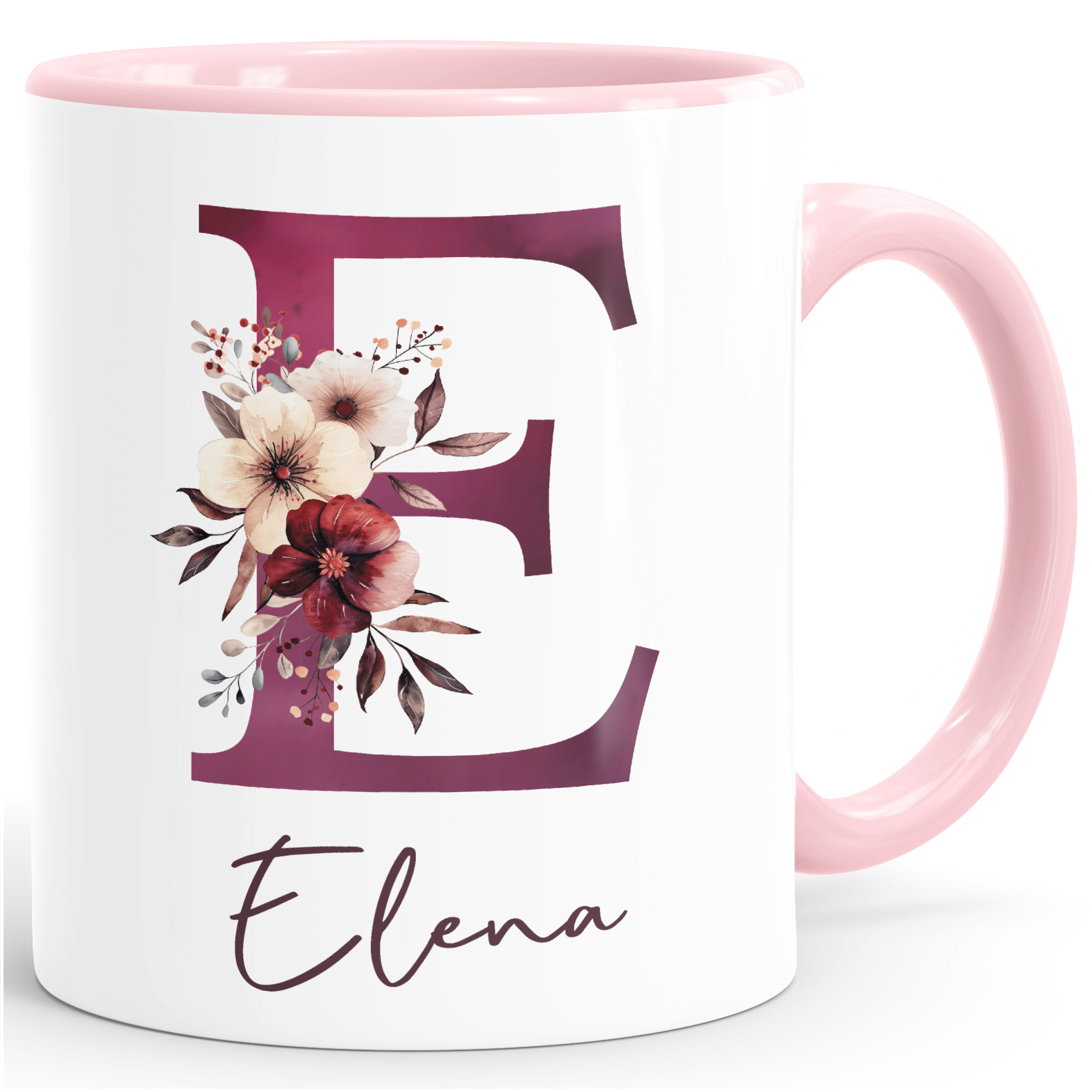 - Elegante Blumen-Monogramm Tasse: Hochwertige Tassen mit edler floraler Illustration, großem Initial und personalisiertem Namensschriftzug. Ideal als stilvolles Geschenk für Freundinnen, Kolleginnen oder Familie