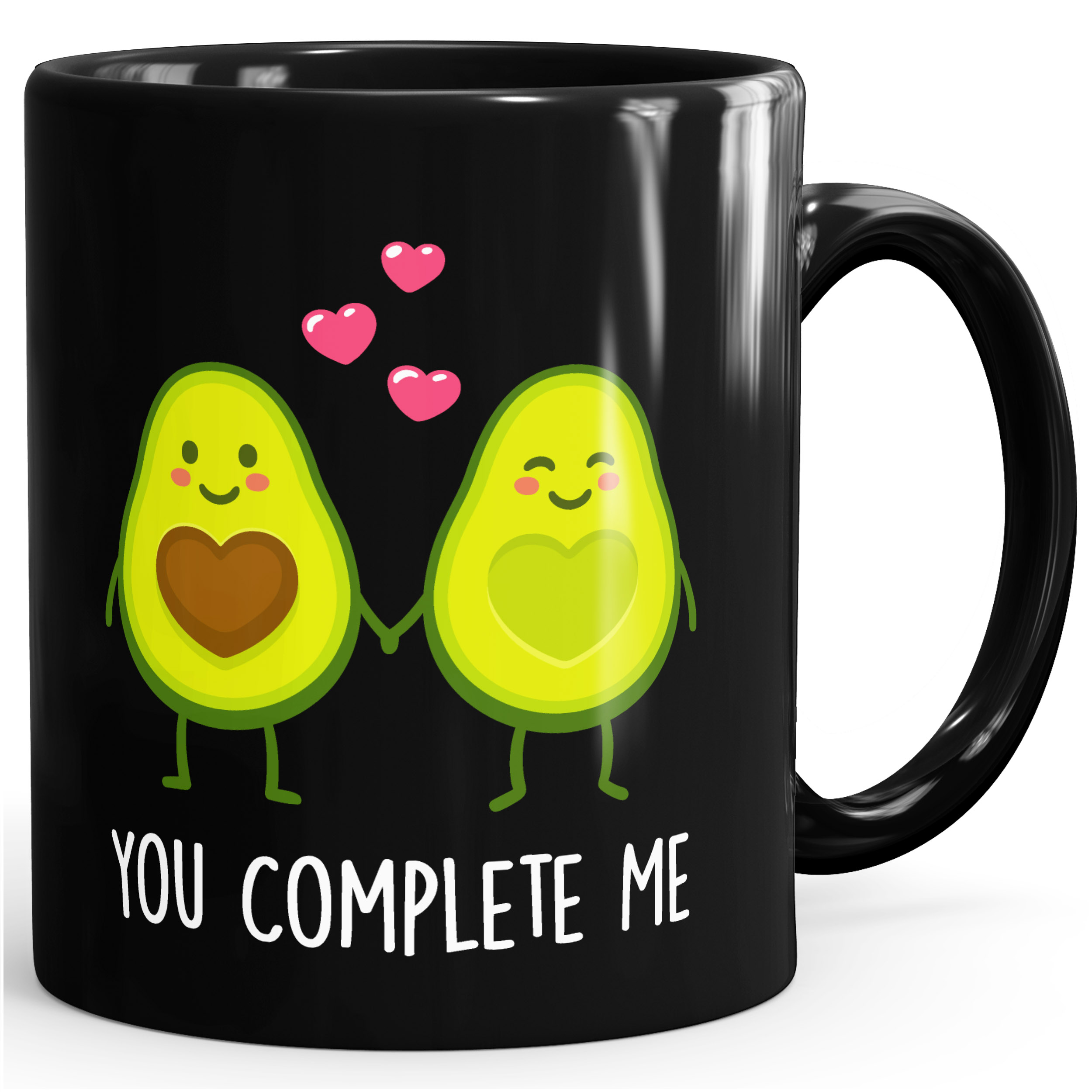 - das perfekte Geschenk für deine besser Hälfte: liebevolle Geschenk-Tasse mit zwei verliebten Avocado-Hälften und "you complete me" Schriftzug der Marke MoonWorks®