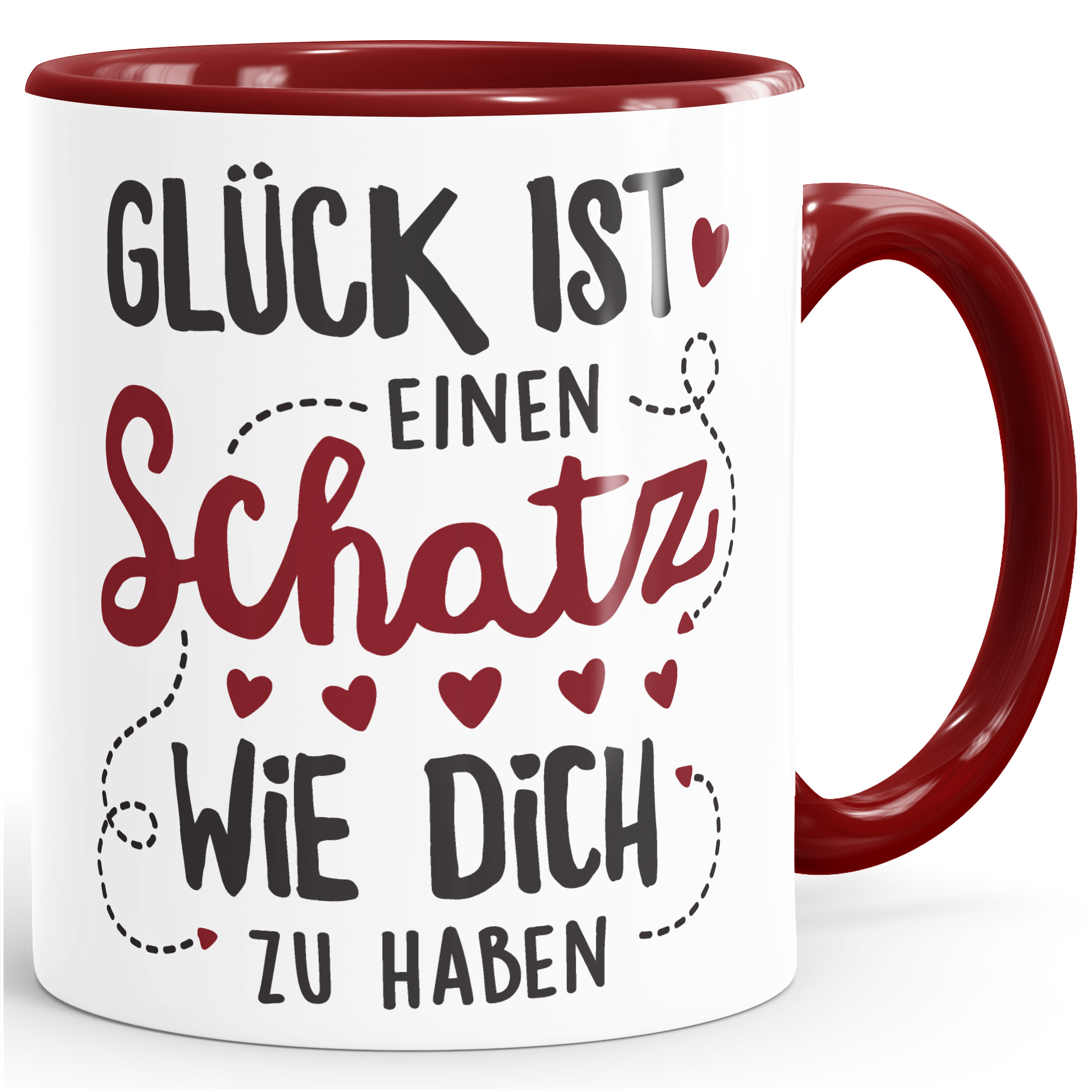 • Überrasche deinen Schatz mit einer süßen Tasse mit schöner Liebeserklärung. "Glück ist einen Schatz wie dich zu haben". Da wärmt der Kaffee den Magen und die Liebesbotschaft das Herz ;-)