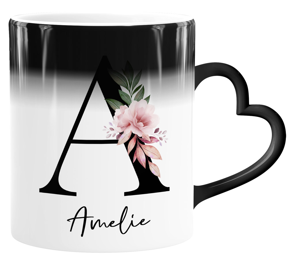 - Ein individuelles Geschenk zum Geburtstag oder zu Weihnachten. Unsere personalisierten Zaubertassen mit Herzhenkel, mit Namen und passendem Anfangsbuchstabe, verziert mit zarten Rosenblüten, sind einfach wunderschöne Kaffeebecher - für die Kaffeepause zuhause oder im Büro